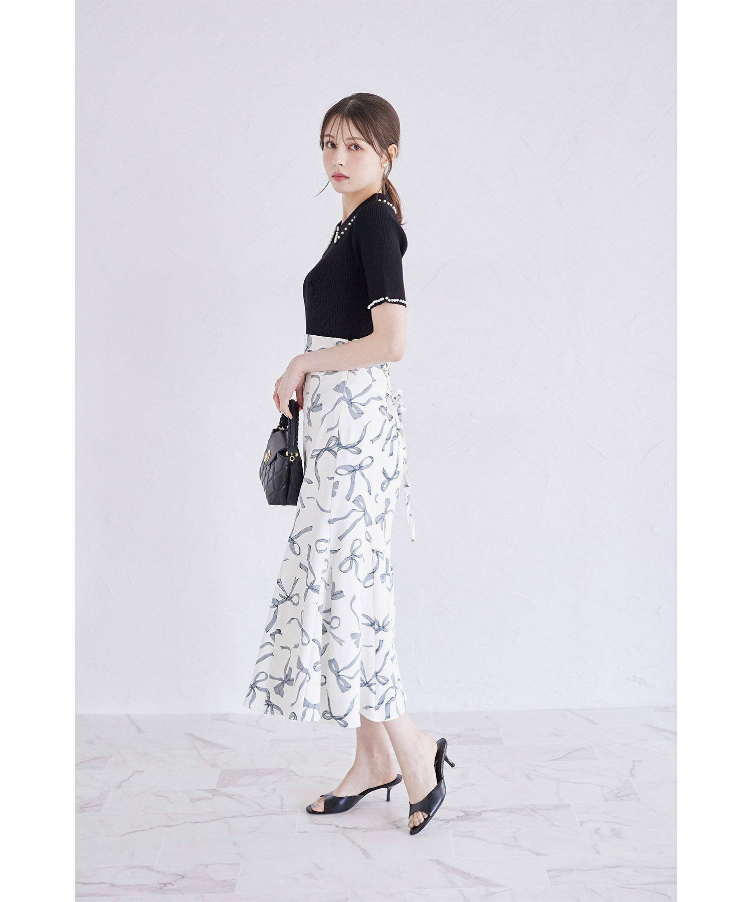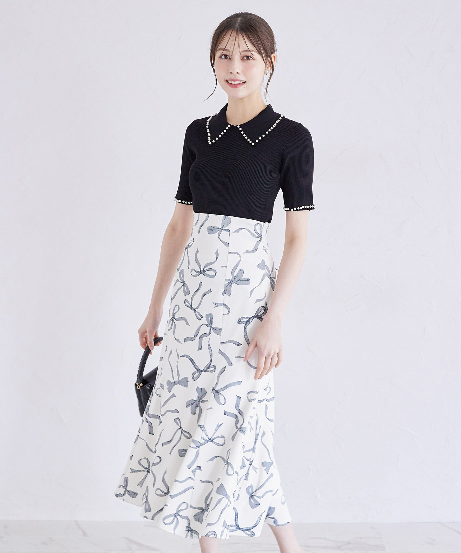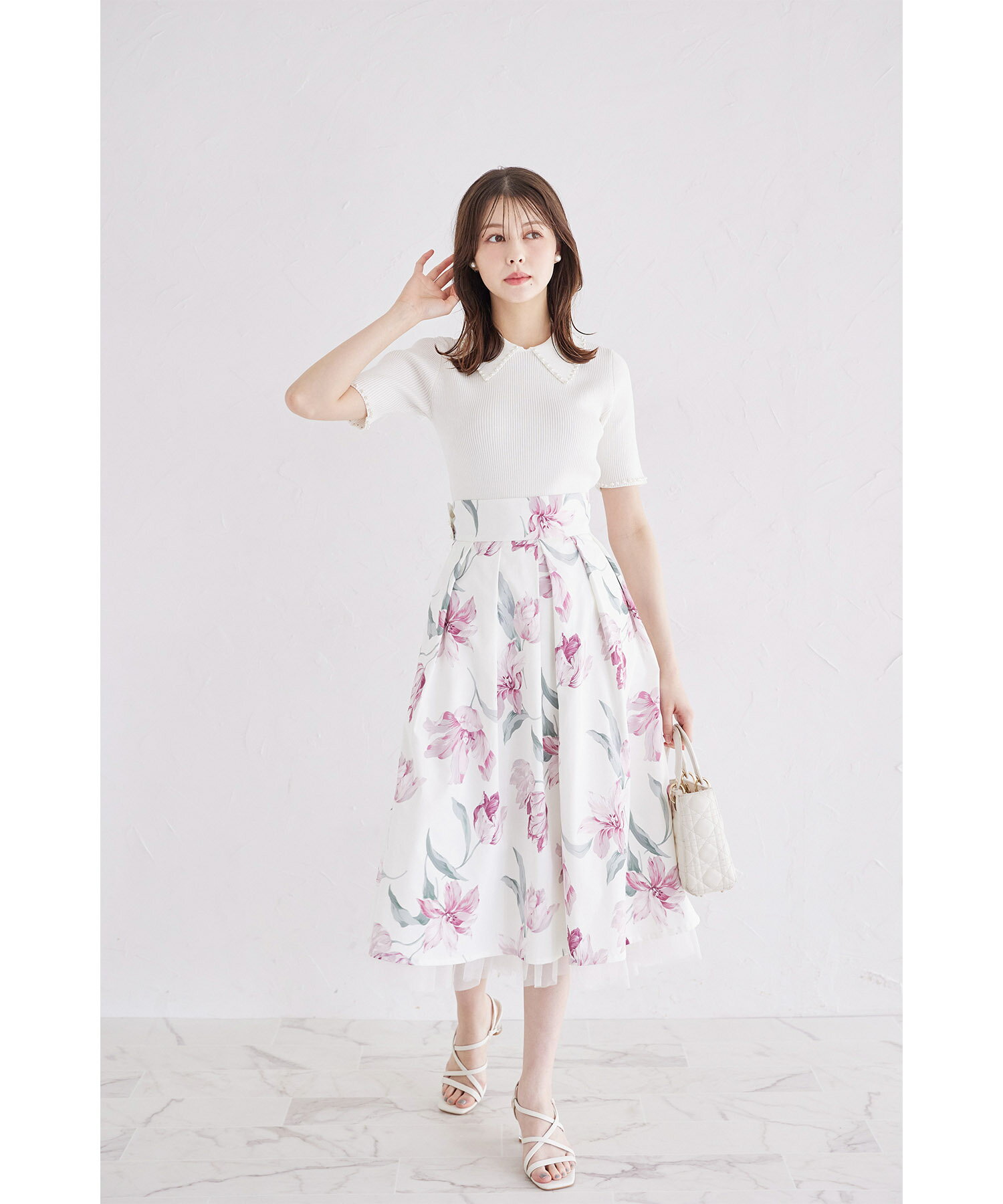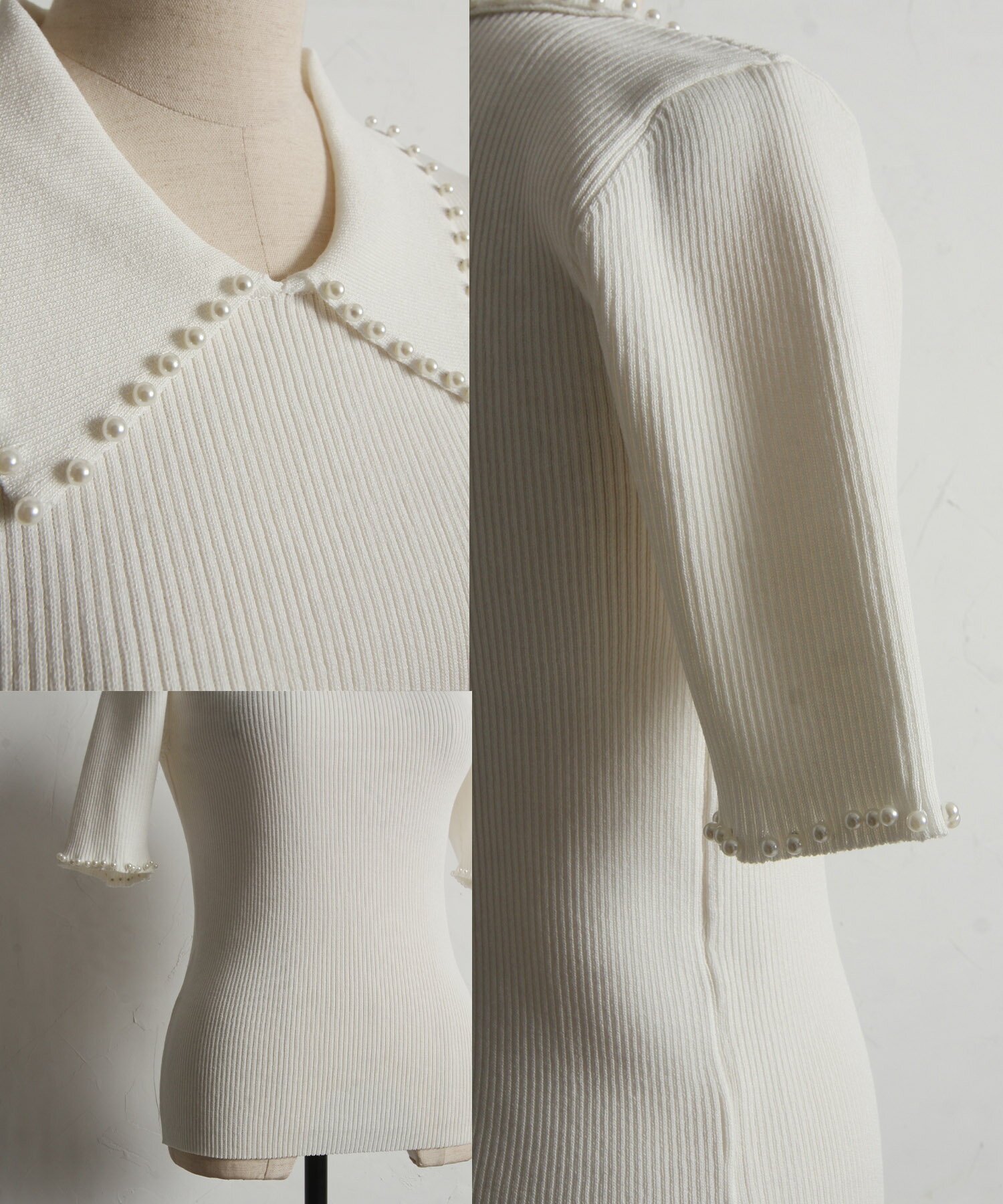 襟付きパール装飾リブニットプルオーバー【vanelin ヴァネリン】tocco closet(トッコクローゼット) ブラック ホワイト ラベンダー 商品番号:186-196862
