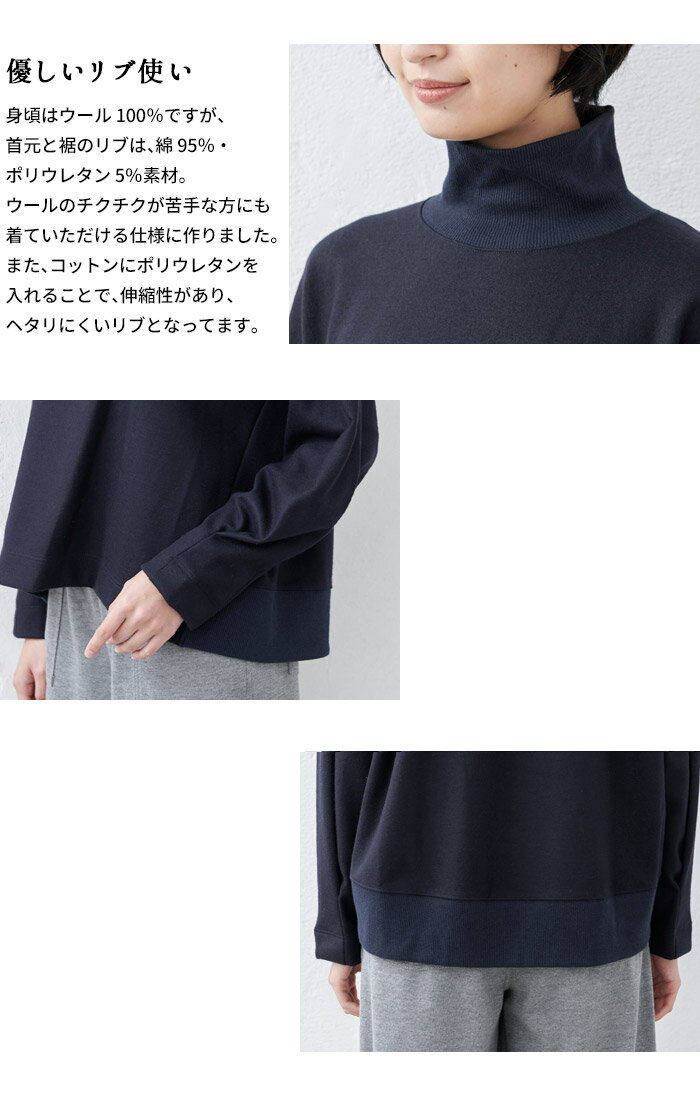 [トレーナー レディース 無地 ] 圧縮ウール100% リブ使いタートルプルオーバー/ 日本製 40代 50代 60代 30代 女性 ファッション メンズ ウール100% 毛100 ニット セーター タートル タートルニット 春 冬 秋 トップス 防寒 暖かい