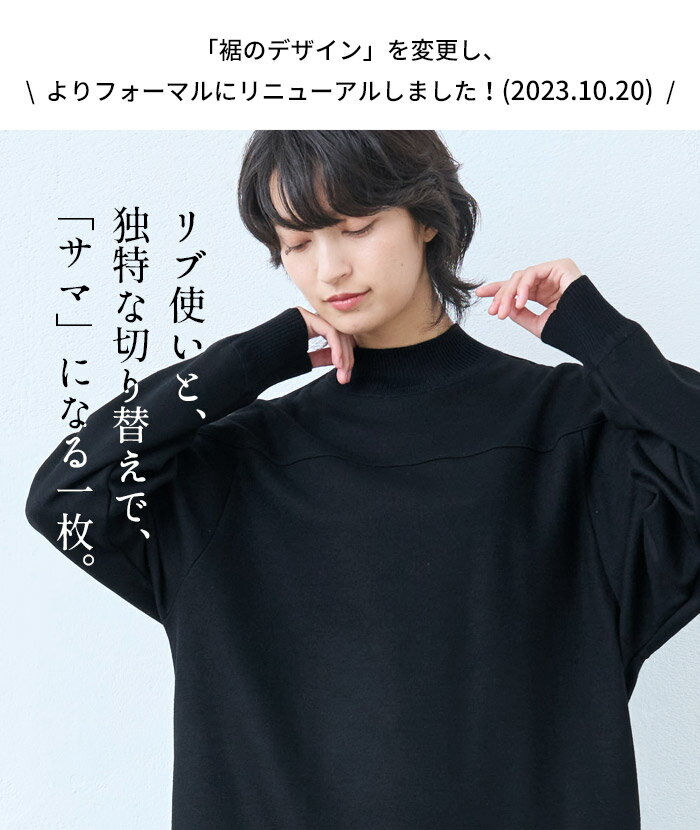 [ ワンピース 秋冬 きれいめ 長袖 ] 圧縮ウール100% リブ使い ワンピース / 日本製 40代 50代 60代 30代 女性 ファッション サイドスリット ハイネック ウール100% カジュアル フォーマル 暖かい ストレッチ 顔合わせ セレモニー
