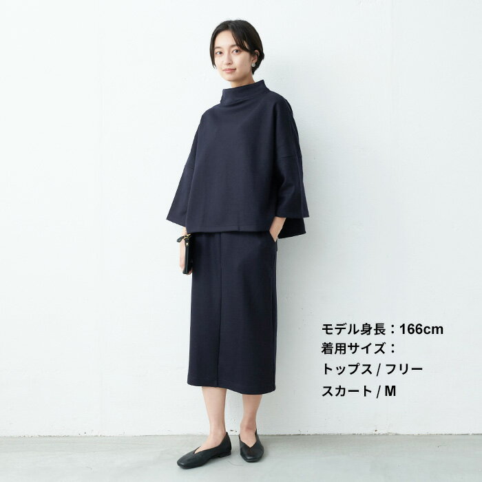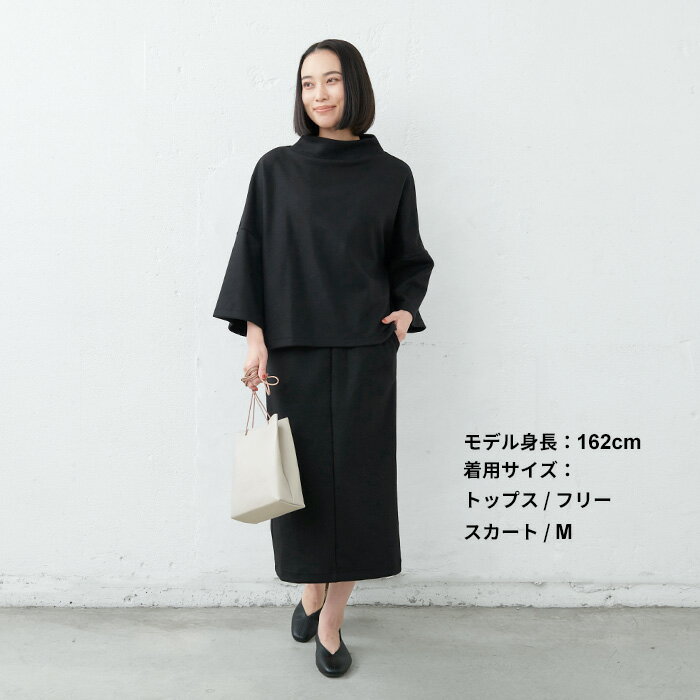 \19日9:59までポイント10倍/【1set返品送料無料】[ 日本製 卒業式 ママ オシャレ スカート 体型カバー 40代 50代 ] 圧縮ウール100% モックネックプルオーバー + ロングスカート 2点セット / ママスーツ 入学式 セットアップ セレモニー フォーマル ストレッチ 暖かい 黒 紺