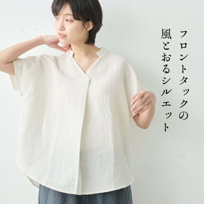 【新作】[ リネン シャツ ブラウス 半袖 レディース ] 天日干し リネンスラブ タックブラウス / 日本製 40代 50代 60代 30代 女性 リネン100% ゆったり 麻 プルオーバー 天然素材 涼しい 大人服 夏 速乾 抗菌
