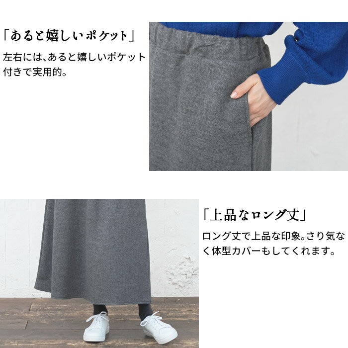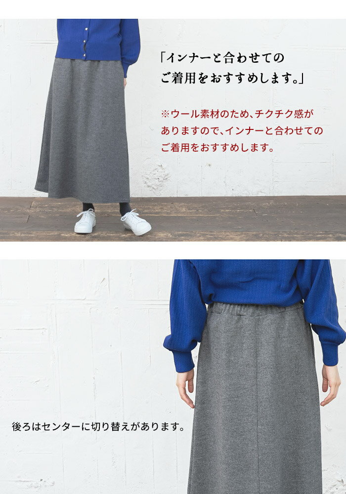 [ スカート きれいめ フォーマル ] 強圧縮ウール100% ロングスカート / 日本製 30代 40代 50代 60代 女性 ロング ウール グレー ネイビー ブラック シンプル カジュアル 大きいサイズ LL 防寒 暖かい 冬 秋