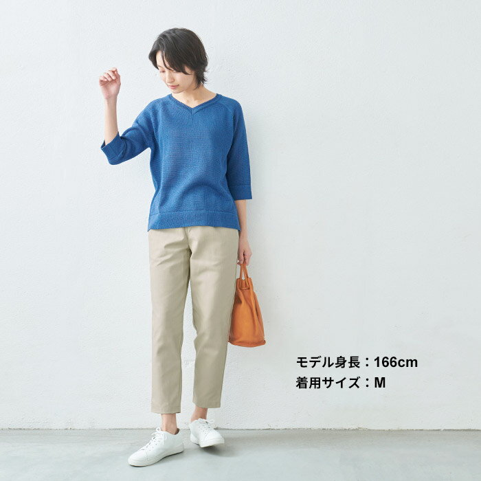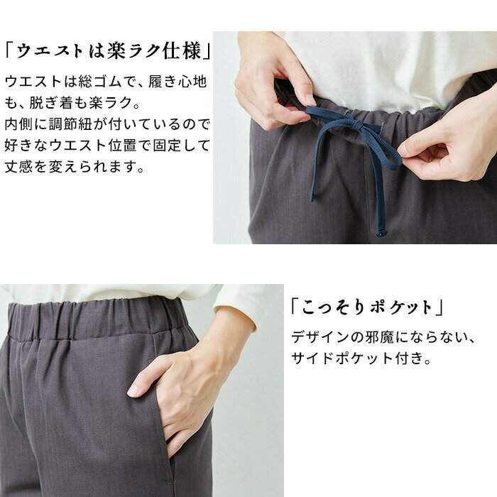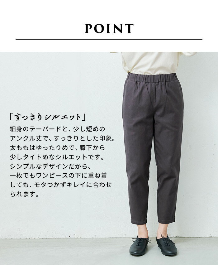 [ テーパードパンツ レディース きれいめ ] コットン100% しっかり厚手 ヘリンボン アンクルパンツ / 日本製 40代 50代 60代 30代 女性 ファッション ウエストゴム コットン 綿 カジュアル 春 夏 秋 きれいめ