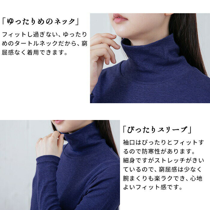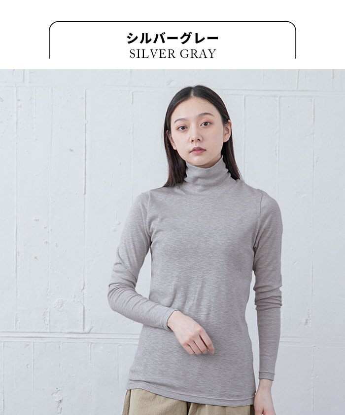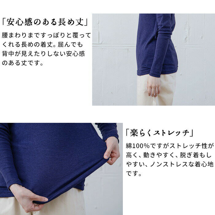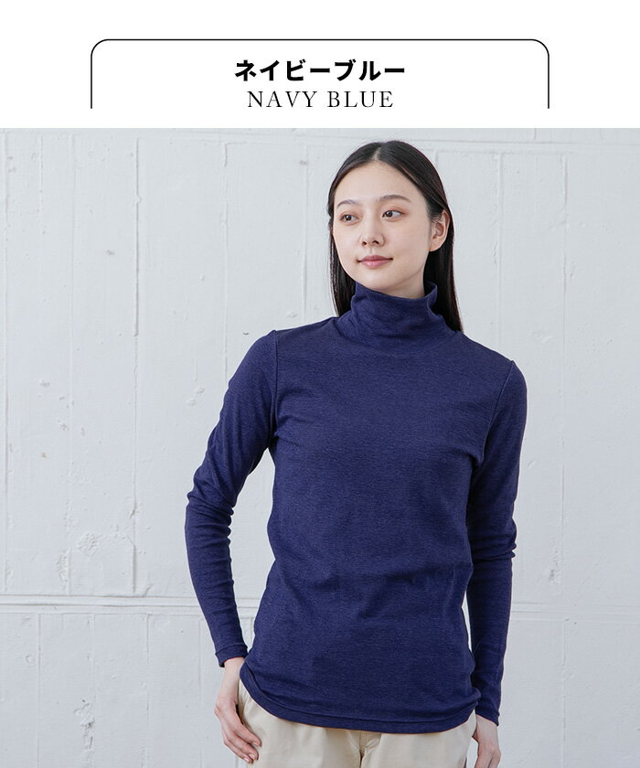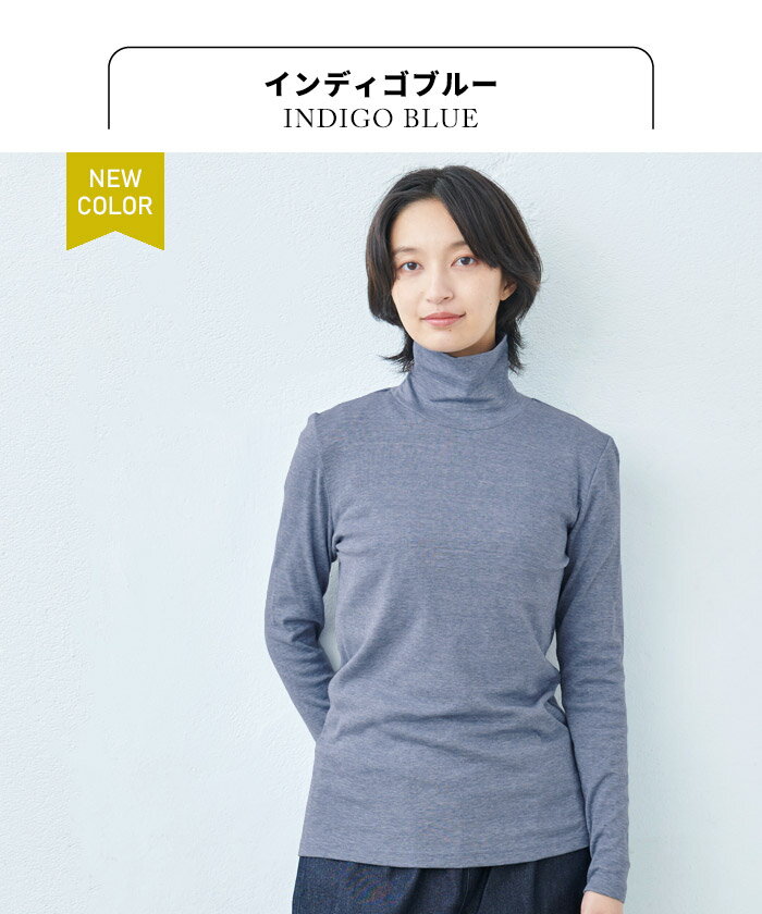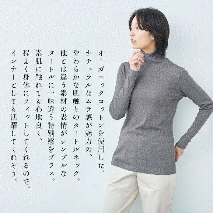 [ タートルネック レディース 長袖 インナー 綿100% ] オーガニックコットン マーブル天竺 タートルネック プルオーバー / 日本製 メール便可 40代 50代 60代 30代 女性 ファッション コットン100% 薄手 無地