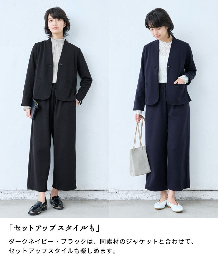 【新色追加】[ ウールパンツ レディース ワイドパンツ ] ウール混 360度 ストレッチ セミワイド アンクル パンツ / 日本製 40代 50代 60代 30代 女性 ウエストゴム ウール混 毛 上品 きれいめ 暖か ゆったり 秋 冬 無地 チェック ヘリンボン