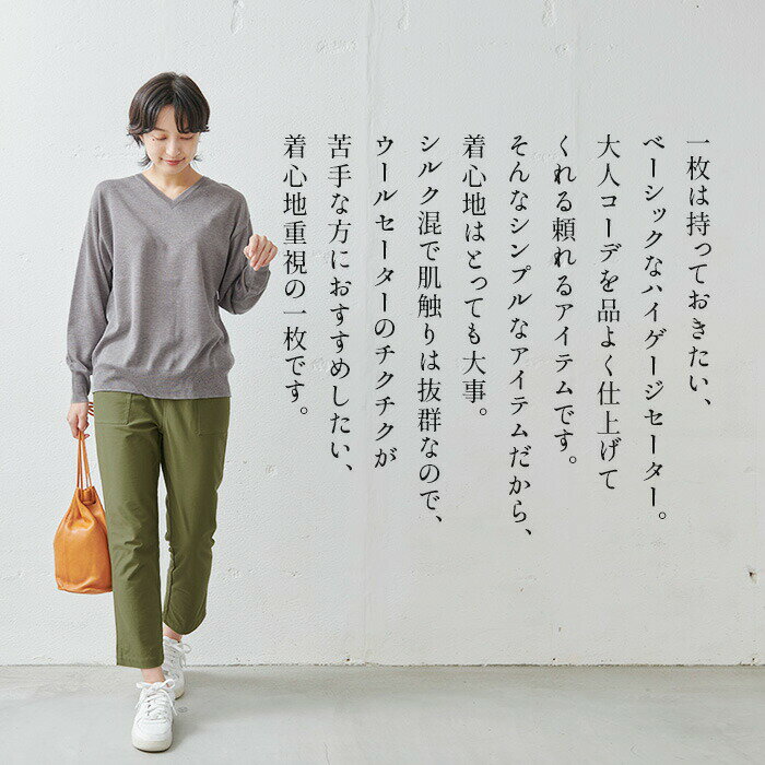 [ ニット セーター レディース ハイゲージ ] シルク混 Vネック セーター / 日本製 メール便可 40代 50代 60代 30代 女性 ファッション 長袖 絹 ベーシック シンプル 薄手ニット 大人服 春 秋 冬 無地 プレゼント 母の日 70代