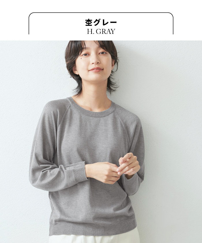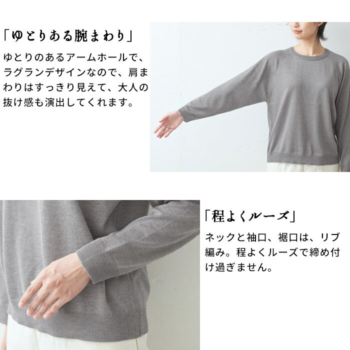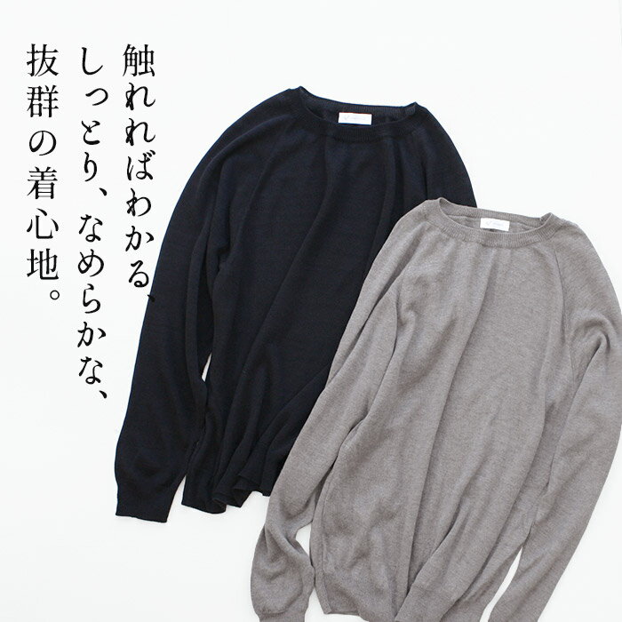 [ ニット セーター レディース ハイゲージ ] シルク混 クルーネック セーター / 日本製 40代 50代 60代 30代 女性 ファッション 長袖 絹 ベーシック シンプル 薄手ニット 大人服 春 秋 冬 無地