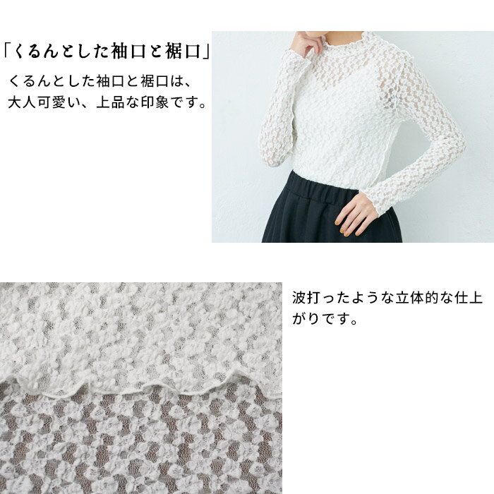 [ フォーマル ブラウス 白 華やか トップス レディース ] オーガニックコットン レース プルオーバー / 日本製 40代 50代 30代 オフィス ブラウス ナチュラル 入学式 卒業式 薄手 長袖 インナー シアー シースルー ハイネック 花柄