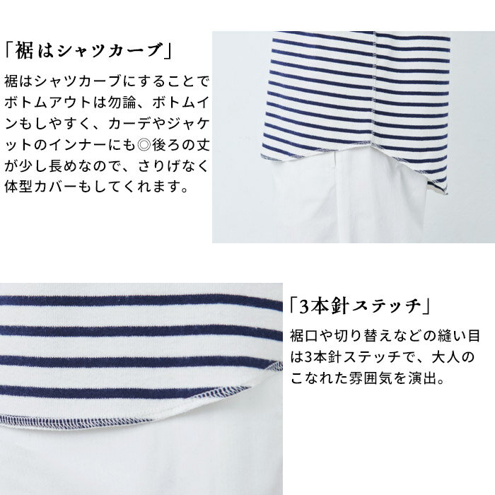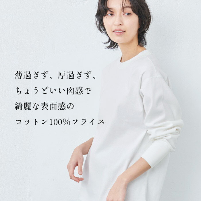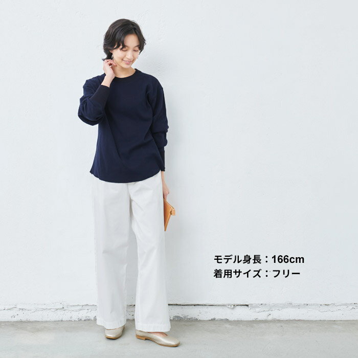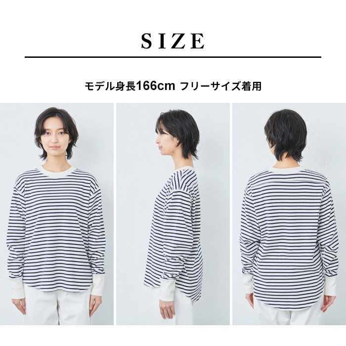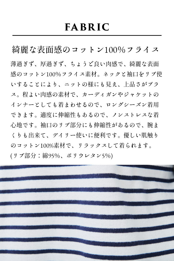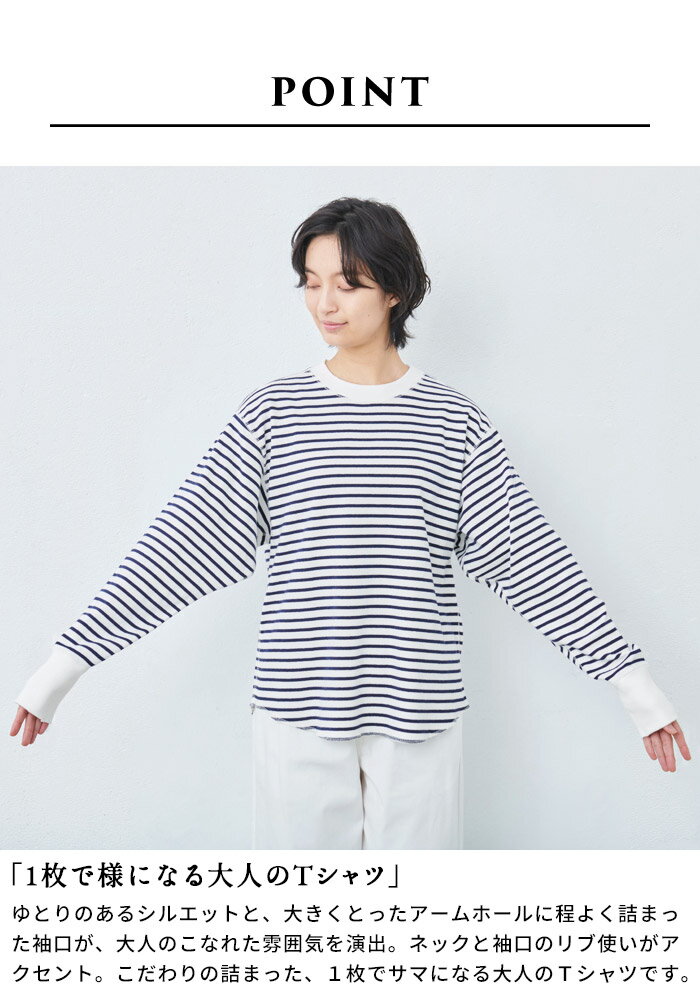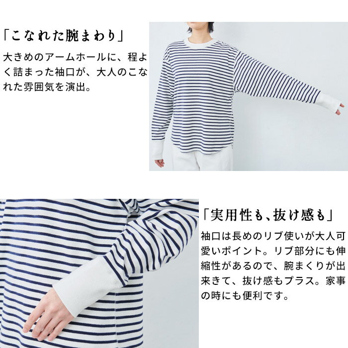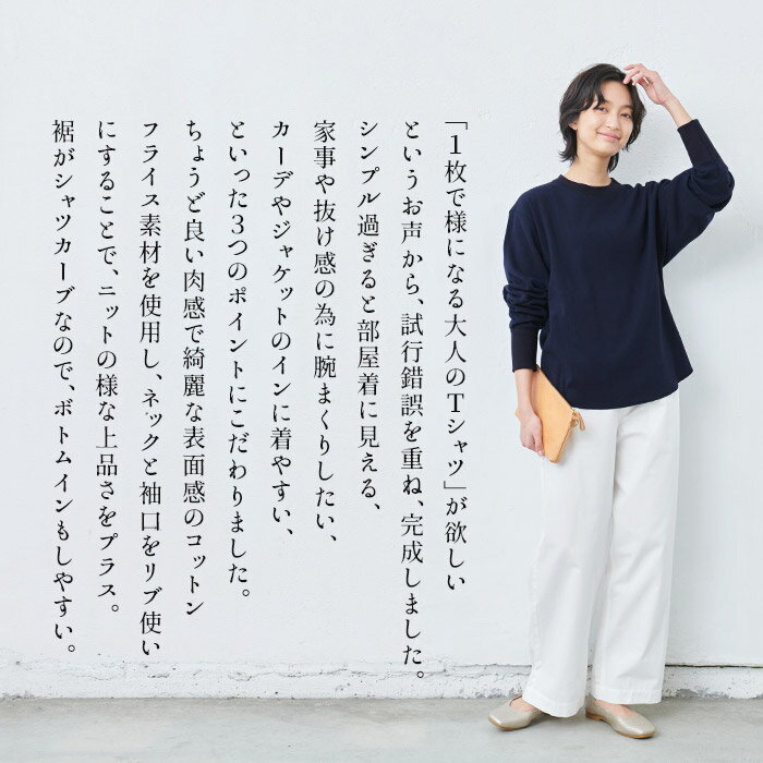 【再入荷】[ Tシャツ 長袖 トップス レディース ] コットン100% フライス リブ使い プルオーバー / 日本製 40代 50代 30代 女性 綿100% ゆったり 綿 コットン ボーダー 無地 インナー トレーナー ニット 上品 きれいめ シンプル 着回し ナチュラル