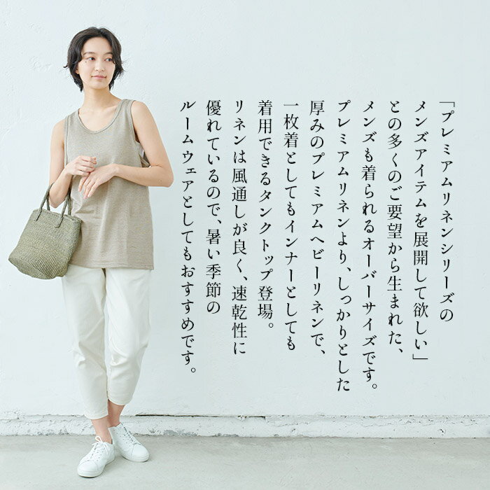 [ タンクトップ メンズ インナー 速乾 抗菌 ] プレミアムヘビーリネン100% タンクトップ / 日本製 リネン100% 麻100% 涼しい ユニセックス 男女兼用 無地 アンダーウェア 吸汗速乾