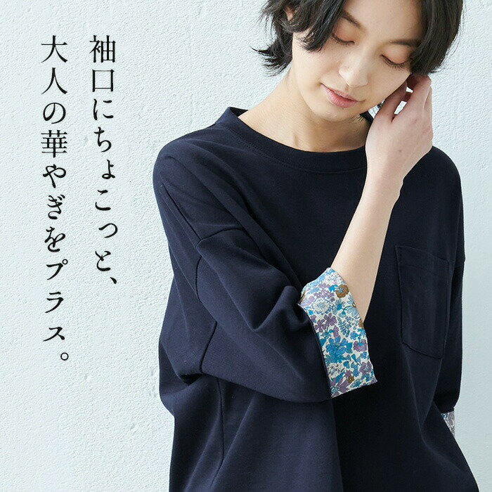 【新色追加】[ カットソー 七分袖 50代 ] リバティプリント 使い コットン100% ミニ裏毛 シルケット プルオーバー / 日本製 40代 30代 女性 リバティ LIBERTY 綿100% きれいめ 綿 コットン 花柄 ゆったり 薄手 トレーナー