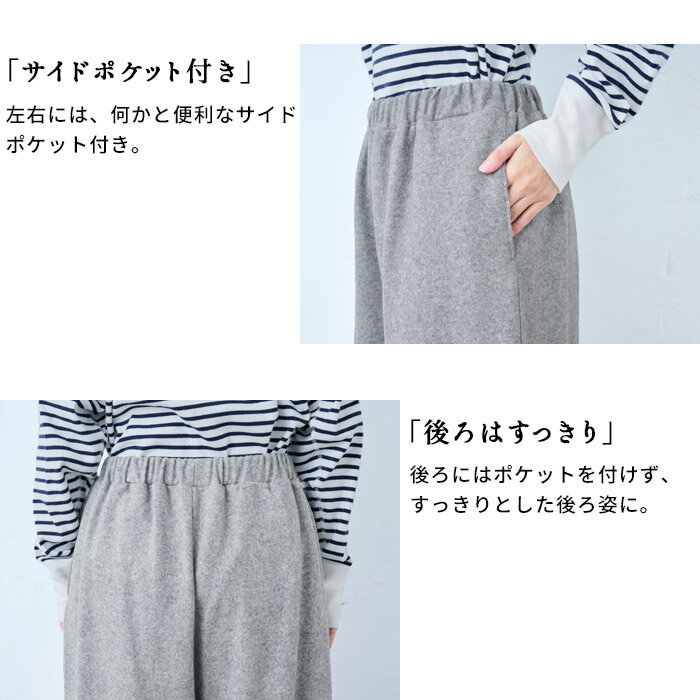 【新色追加】[ パンツ レディース ウール ] ラムウール 圧縮 ストレッチ ワイドパンツ / 日本製 40代 50代 60代 30代 女性 厚手 暖かい ウール混 着回し ウエストゴム ポケット付き 体型カバー ゆったり 無地 大人 秋冬