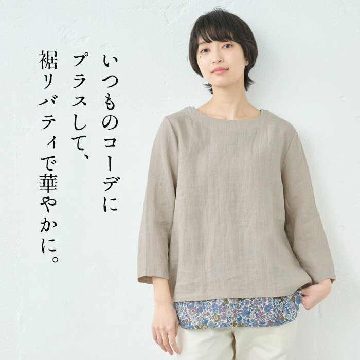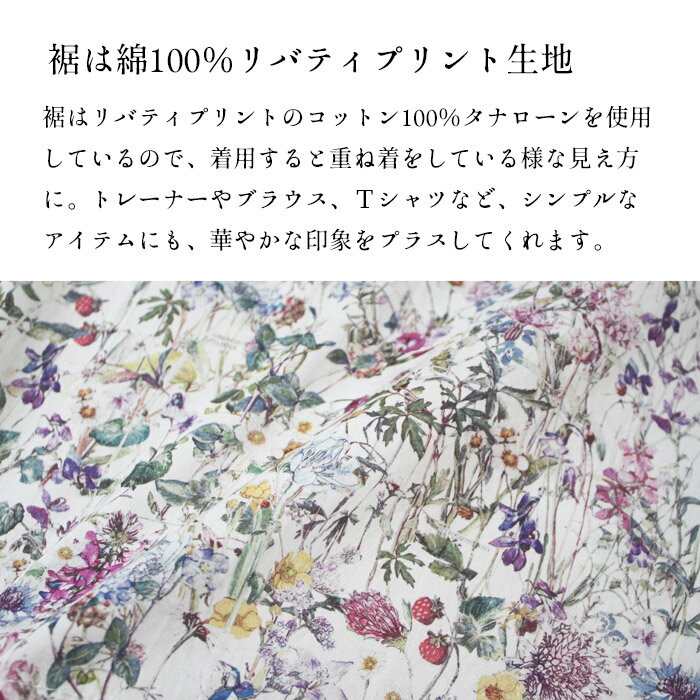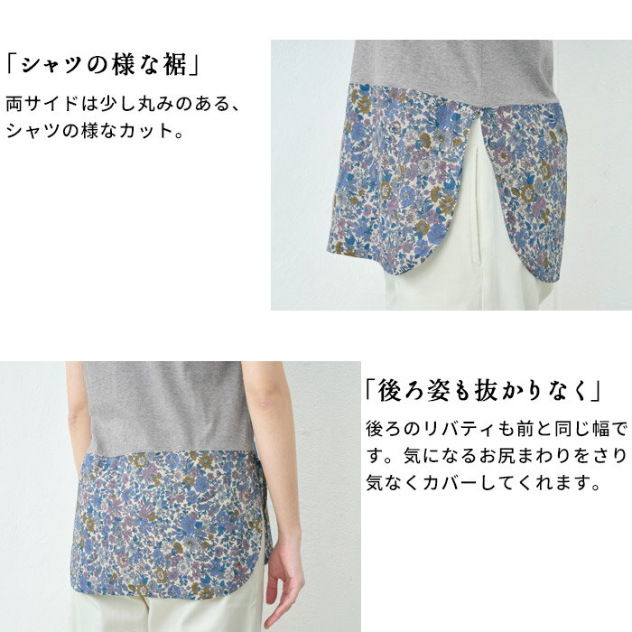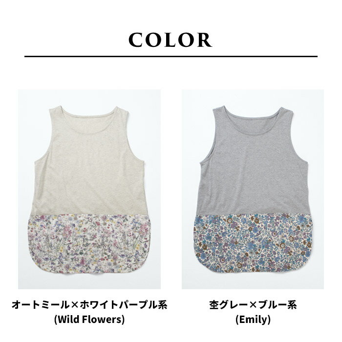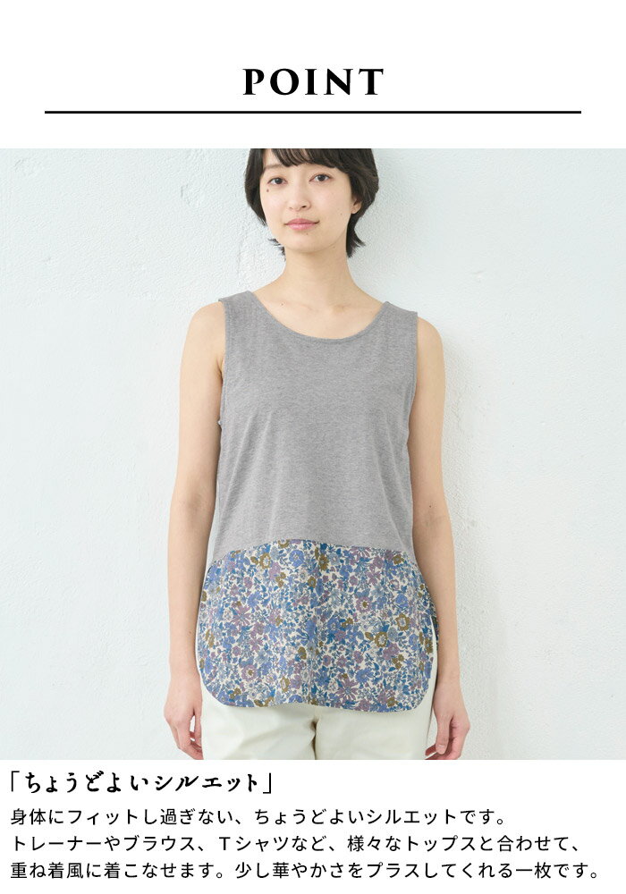 【新作】[ お尻隠し インナー タンクトップ レディース リバティ 重ね着風 ] 裾リバティ使い タンクトップ / 日本製 40代 50代 60代 女性 綿100% LIBERTY タナローン 重ね 着 インナー 薄手 春 夏 秋 トップス 無地 コットン100% 花柄 レイヤード
