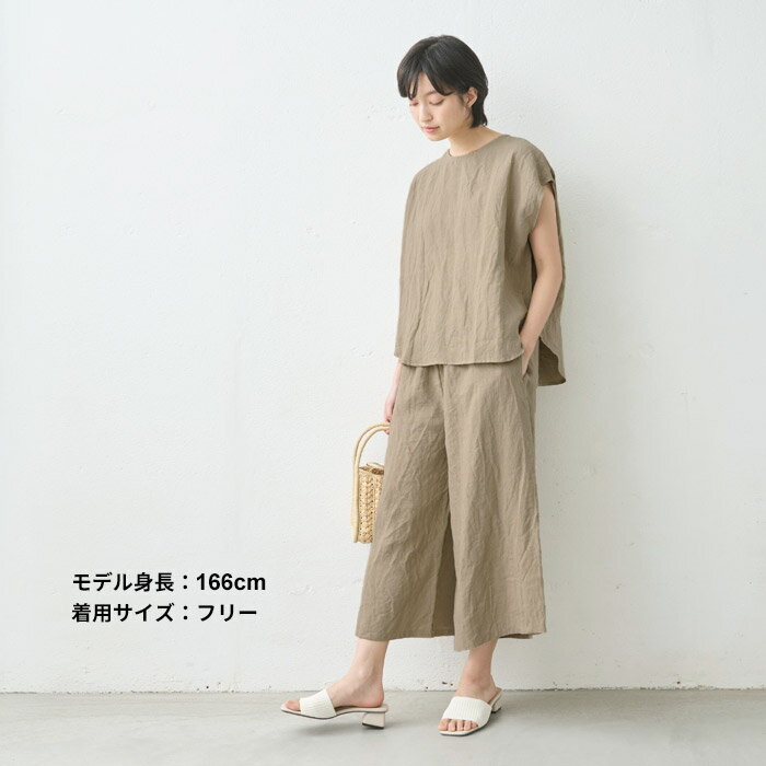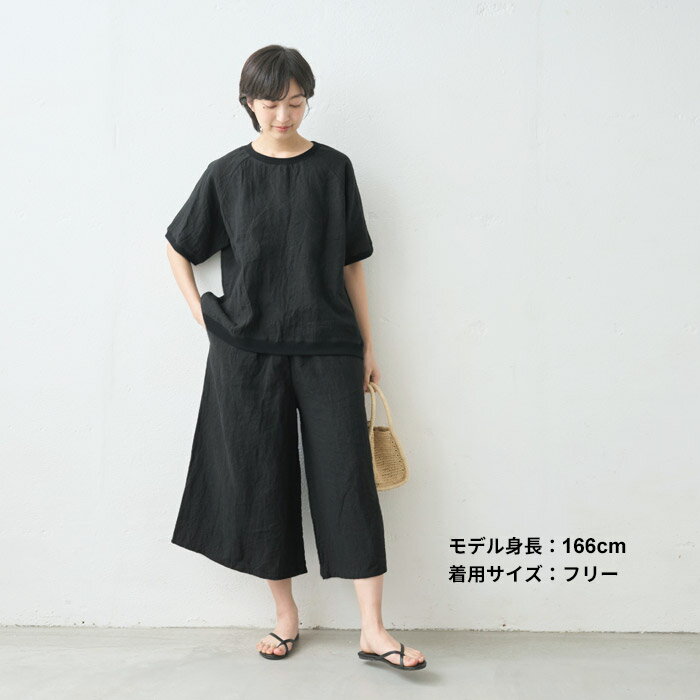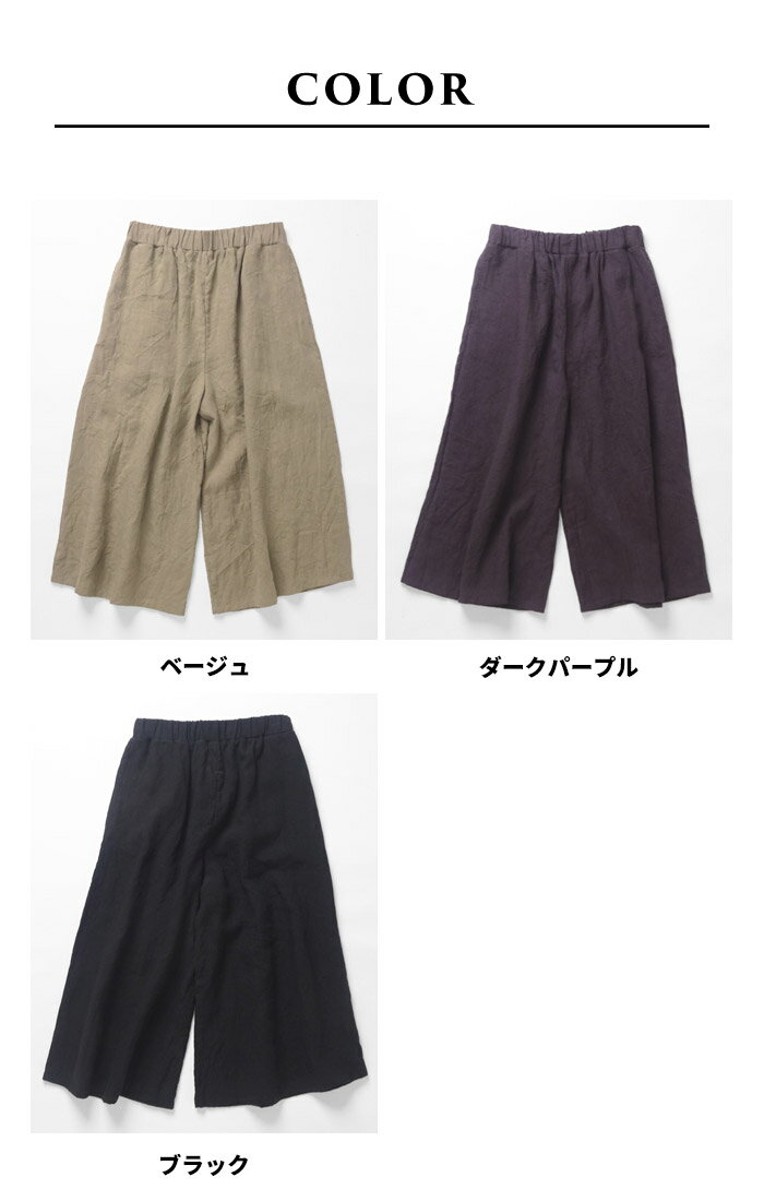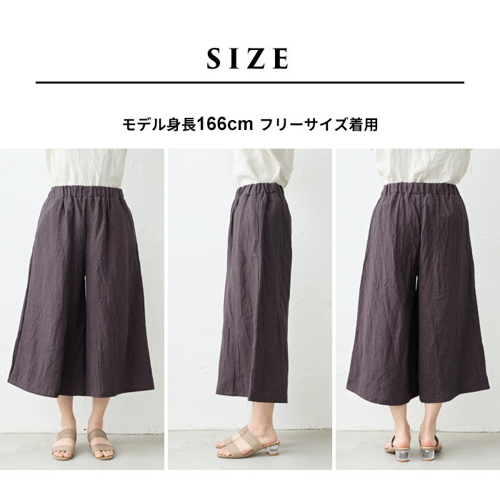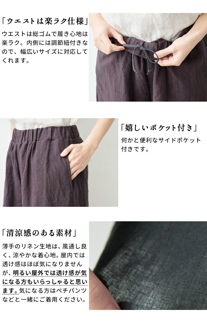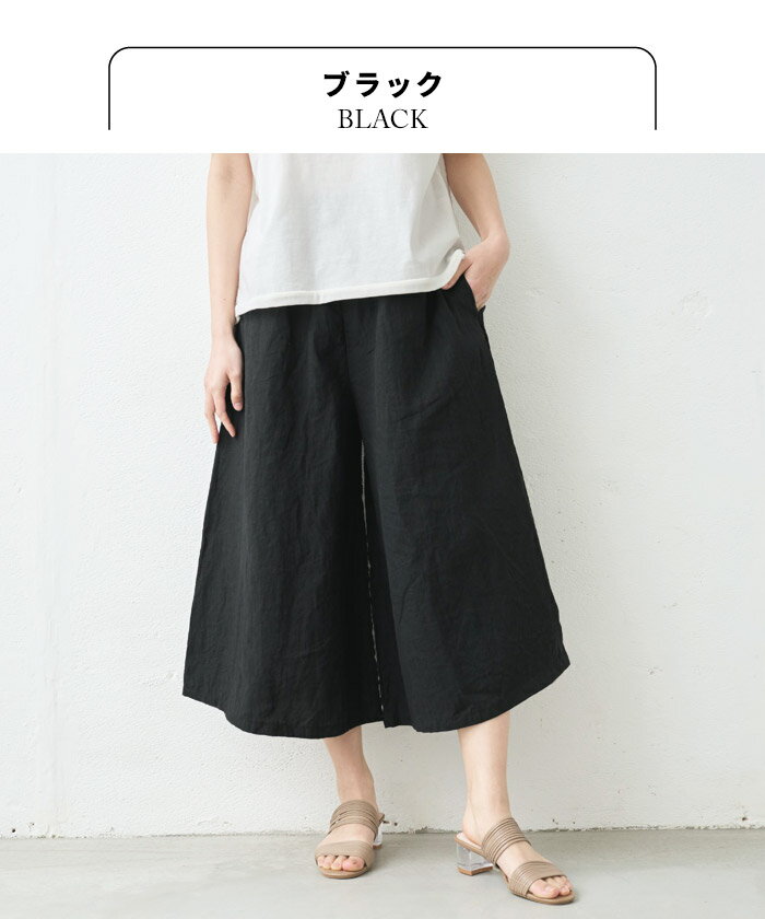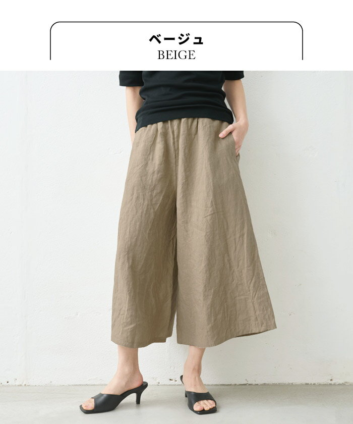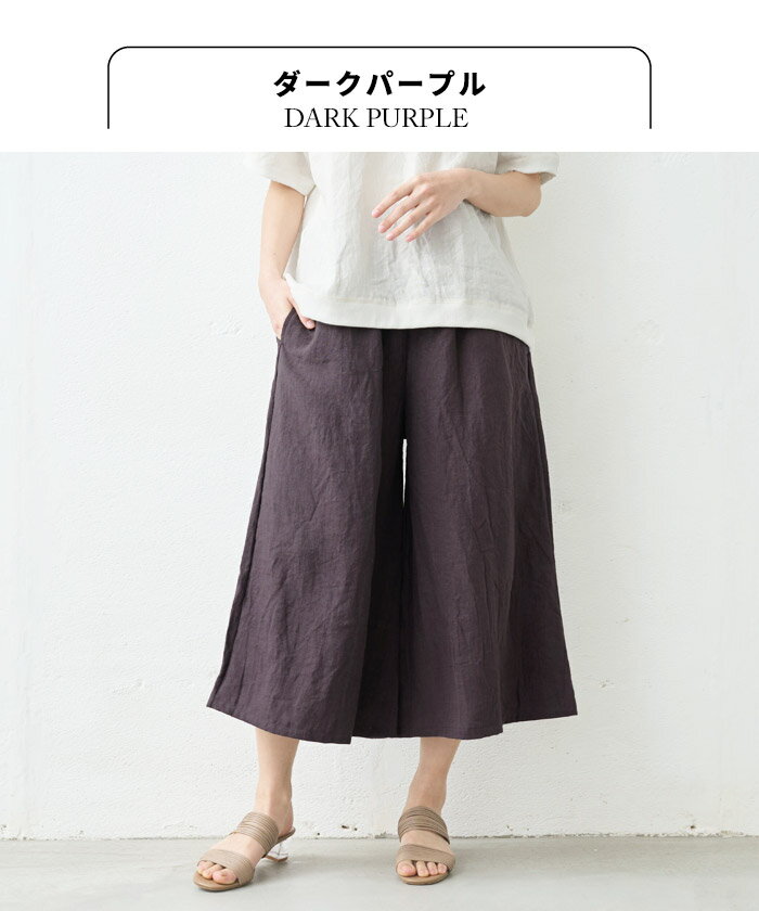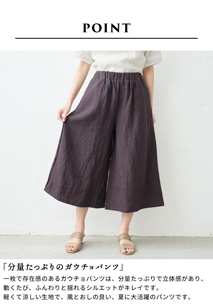【新作】[ パンツ リネン レディース 麻 ] 40番手 フレンチリネン100% ガウチョパンツ / 日本製 40代 50代 60代 30代 リネン100% 麻100% きれいめ ゆったり ウエストゴム 春物 春 夏 総ゴム 体型カバー すっきり