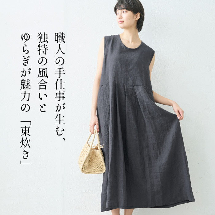 [ ワンピース レディース 無地 リネン 夏 ] 東炊き リネン100% ノースリーブ ワンピース / 日本製 40代 50代 60代 麻100% 麻 ロング マキシ 涼しい きれいめ ゆったり ロング丈 薄手 カジュアル ナチュラル ふんわり 大きめ 春 夏 秋