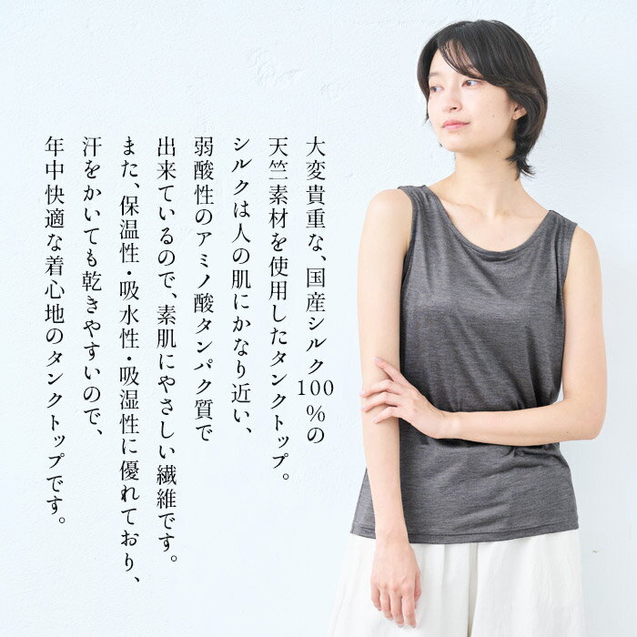 【新作・8/31までお試し価格】[ シルク100% 下着 タンクトップ インナー レディース ] トップ染め ジャパン シルク100% タンクトップ / 40代 50代 60代 30代 女性 タンク 絹100% 絹 シルク カップなし 敏感肌 保湿 国産シルク 天然素材 ストレッチ 春 夏 秋 冬 大きいサイズ