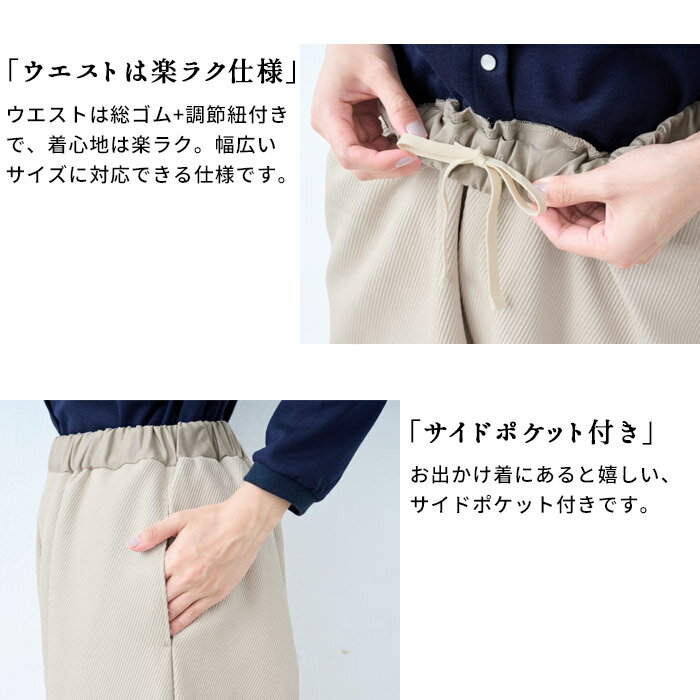 10%OFFクーポン配布◆[ パンツ ワイド レディース 綿 ] コットン100% フレンチカルゼ ワイドパンツ / 日本製 40代 50代 60代 30代 コットン100% 綿100% きれいめ ゆったり 大きめ ウエストゴム 春 秋 冬 総ゴム 体型カバー すっきり 厚手