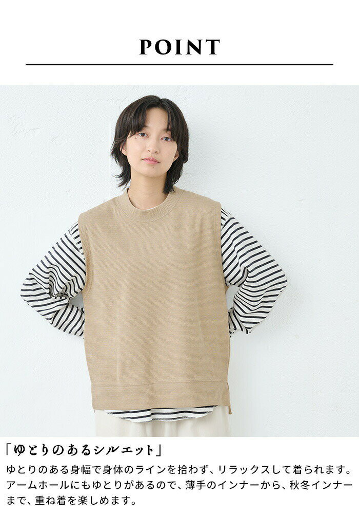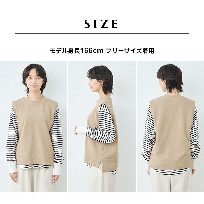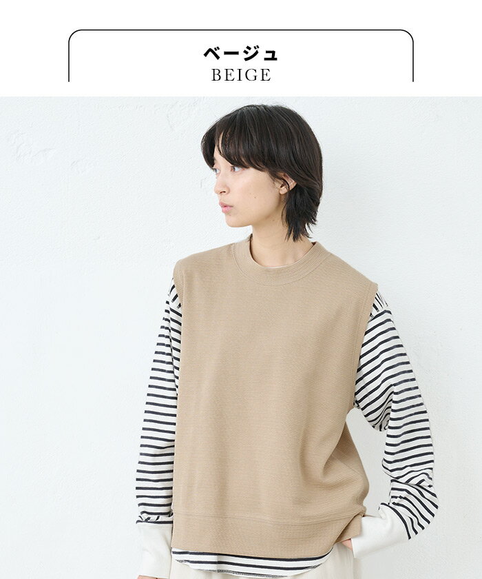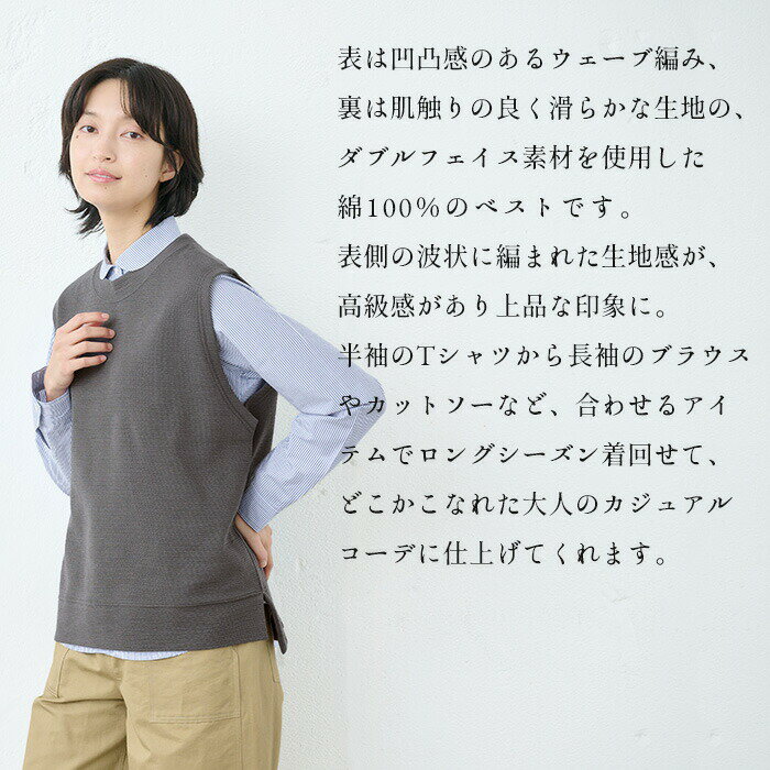 【新作】[ ベスト レディース 秋 綿 コットン ] ウェーブコットン ワッフルベスト / 日本製 40代 50代 60代 30代 女性 ファッション トップス 綿100 コットン100% 春 秋 冬 ゆったり 体型カバー きれいめ 無地 クルーネック カジュアル 重ね着 レイヤード シンプル おしゃれ