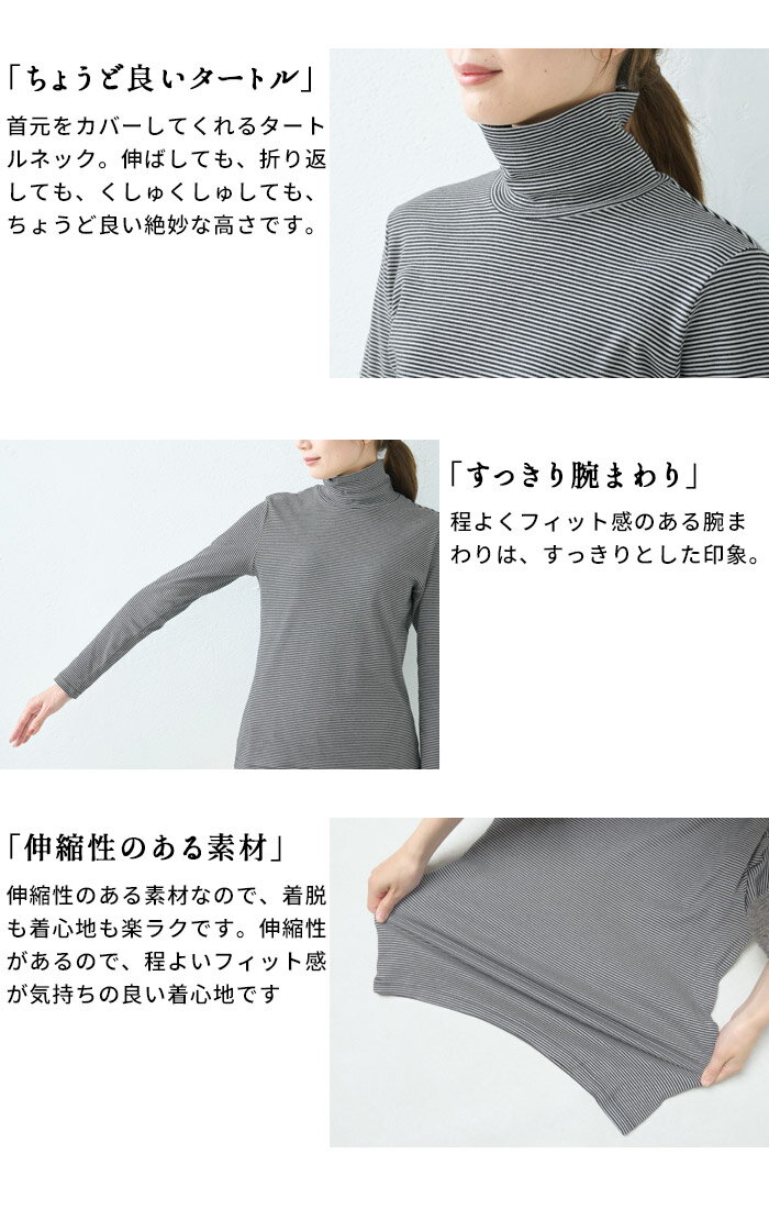 【新作】[ タートルネック 長袖 綿 レディース インナー ] シルクプロテイン加工 コットン100% タートルインナー / 日本製 40代 50代 60代 30代 女性 きれいめ トップス 薄手 タートル 肌に優しい 保温 保湿 通気性 綿100% コットン 無地 ボーダー シンプル 秋 冬 春