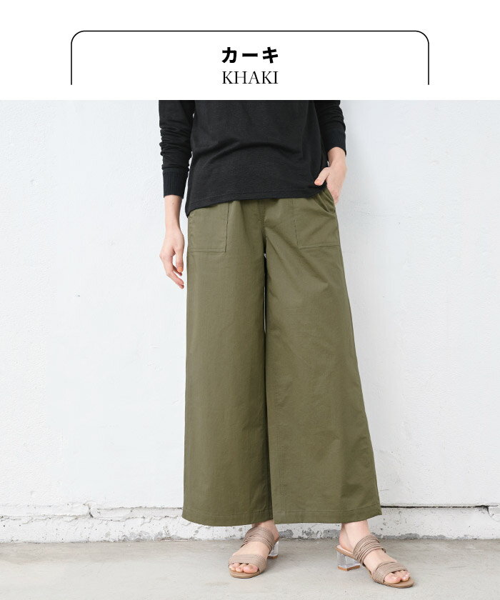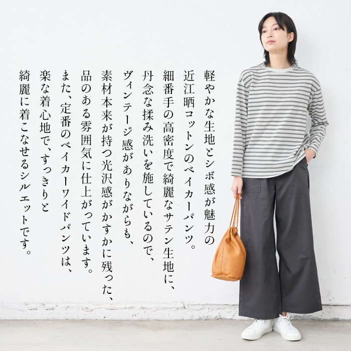 【18日09:59まで!新作・お試し価格】[ ワイド パンツ ベイカー レディース 春夏 ] 近江晒コットン100% ベイカーワイドパンツ / 日本製 40代 50代 60代 30代 きれいめ コットン 綿 ベイカーパンツ 薄手 軽い ウエストゴム 春 夏 秋 総ゴム 体型カバー 無地