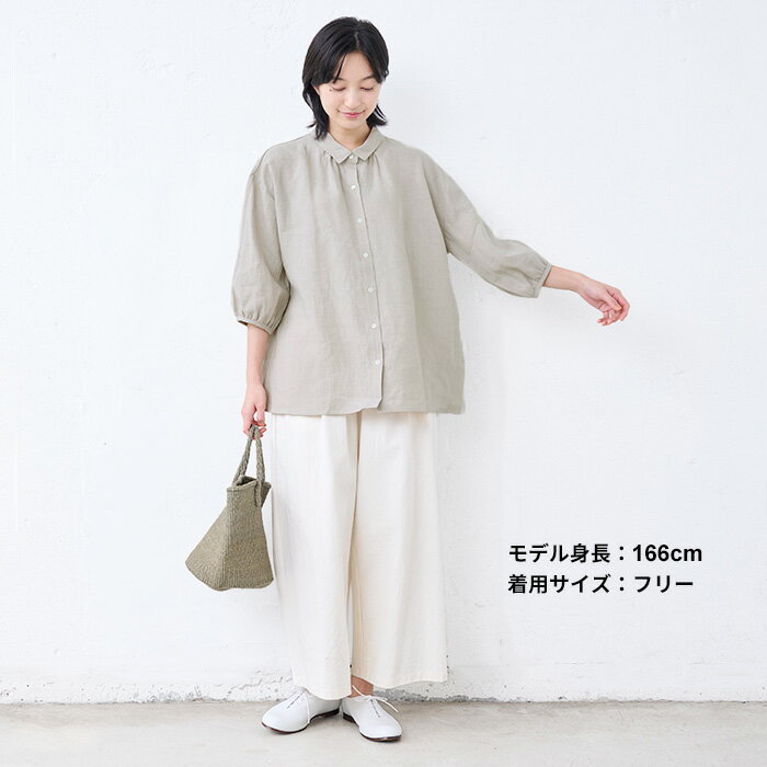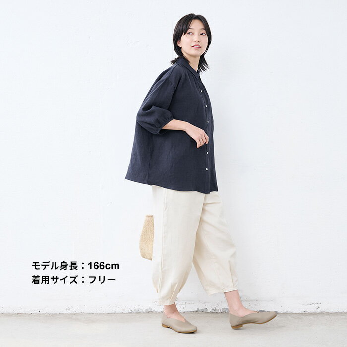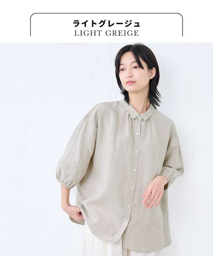 【新作】[ リネン シャツ 七分袖 レディース ブラウス ] 40番手 フレンチリネン100% ギャザー使い シャツ / 日本製 40代 50代 60代 30代 女性 ファッション 7 分 袖 七分袖 麻 速乾 抗菌 麻100% 無地 襟付き 体型カバー 日除け 紫外線対策 日よけシャツ 羽織り