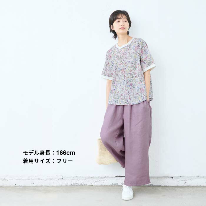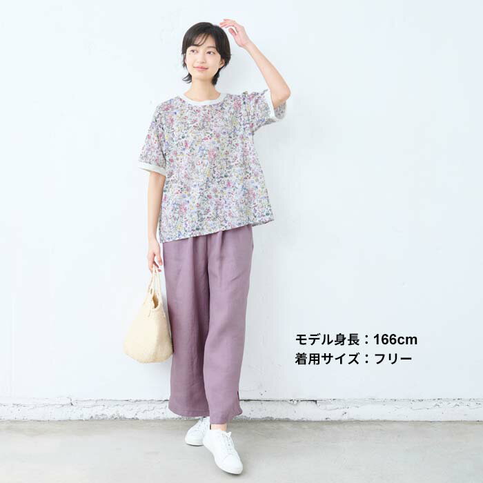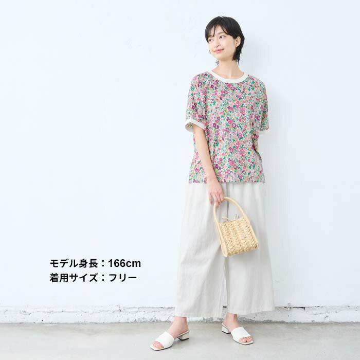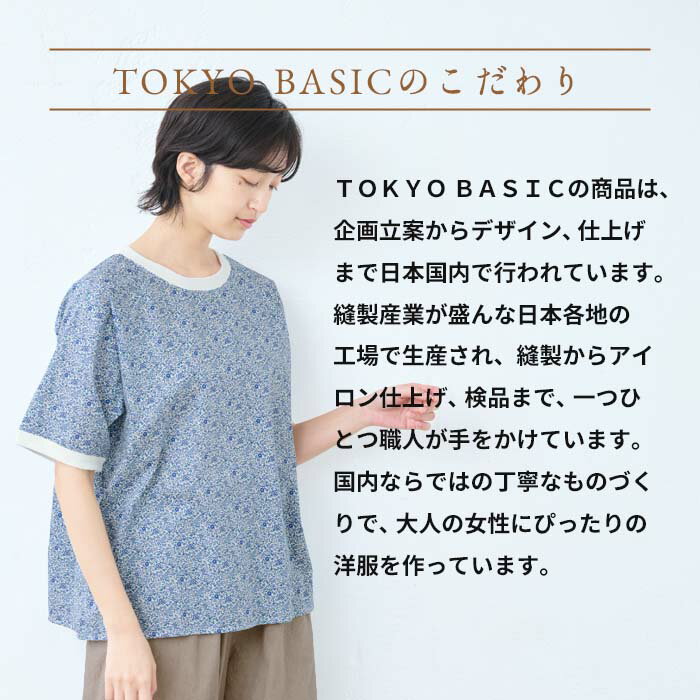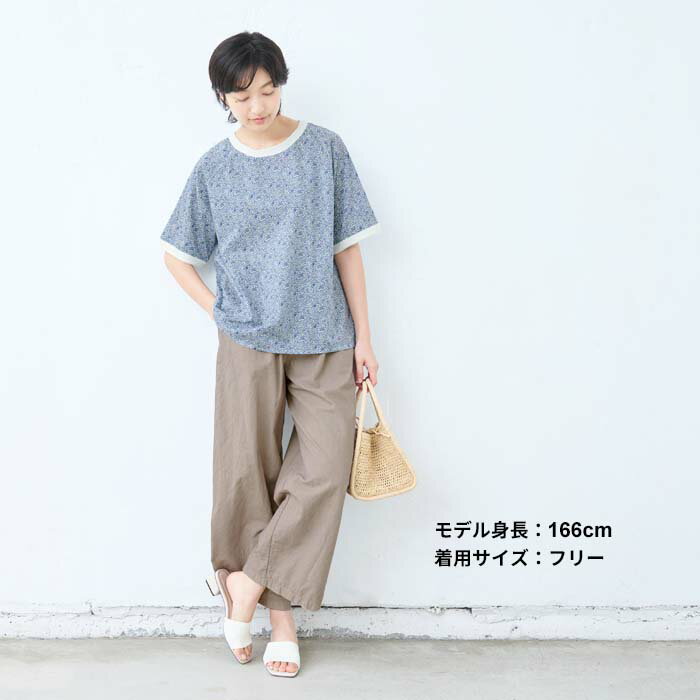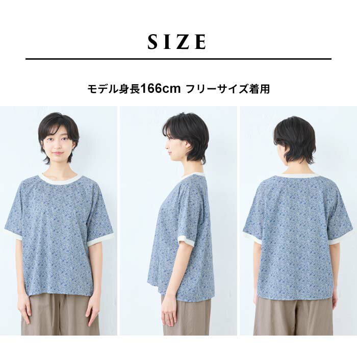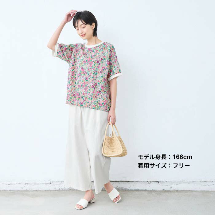 【新作】[ リバティ ブラウス 半袖 レディース 大人服 薄手 ] コットン100% リバティプリント リブ使いブラウス / 日本製 40代 50代 60代 ファッション 花柄 総柄 Tシャツ ゆったり カジュアル 夏 トップス 服 綿100% 綿100 リバティー liberty タナローン