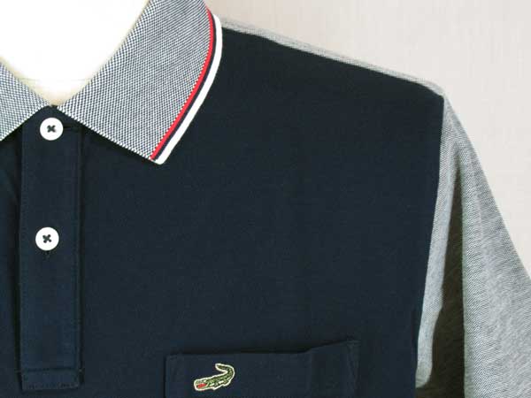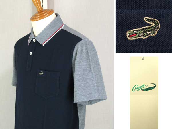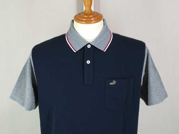夏 クロコダイル 半袖 ポロシャツ 綿 鹿の子素材 1ポイントクロコダイルマーク付 配色切替 紺×グレー【M】【L】【LL】