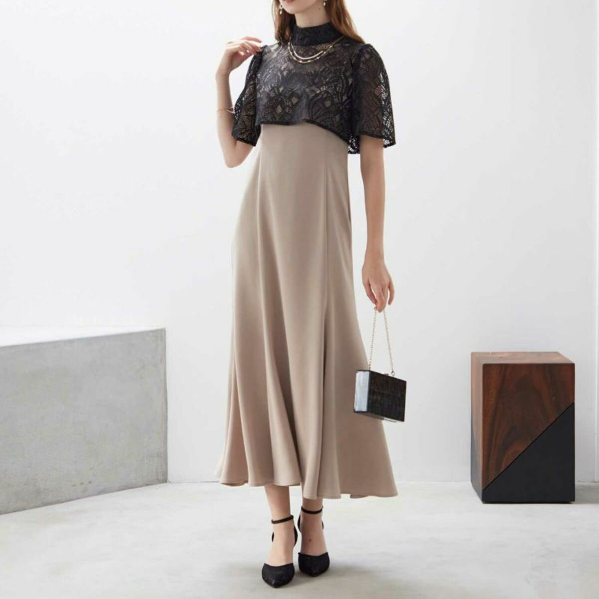【30%OFFクーポンあり】ザ・リッチ ボレロセットワンピース 結婚式 ロング ドレス 高級感 成人式 同窓会 マーメイド ゲスト ロングドレス 袖付き 大きいサイズ dorrydoll ベージュ ブラウン ネイビー