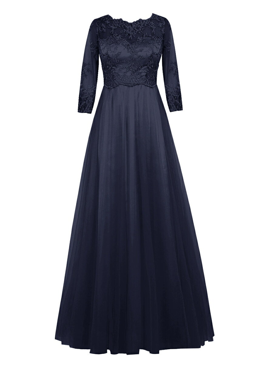 結婚式ドレス オーダーメイド 演奏会 パーティードレス ロング丈 母親 大きいサイズ 袖あり チュール 体型カバー マキシ 着痩せ aライン ミセス フォーマル アップリケ 40代 50代 プレゼント ネイビー ブラック セレモニー ブライダル 顔合わせ 式典