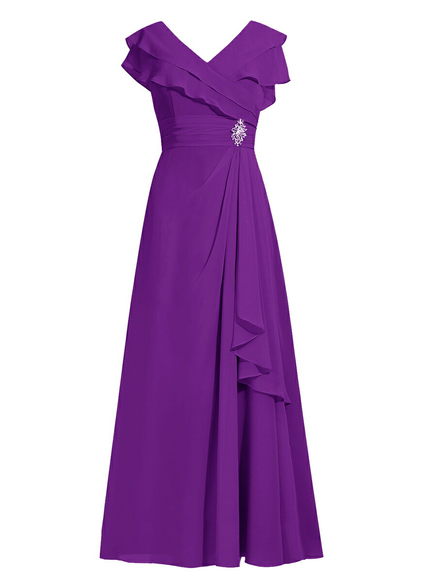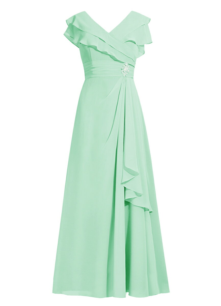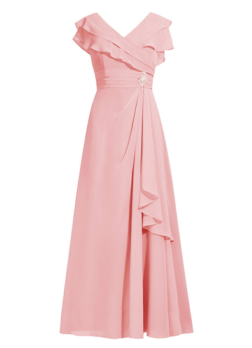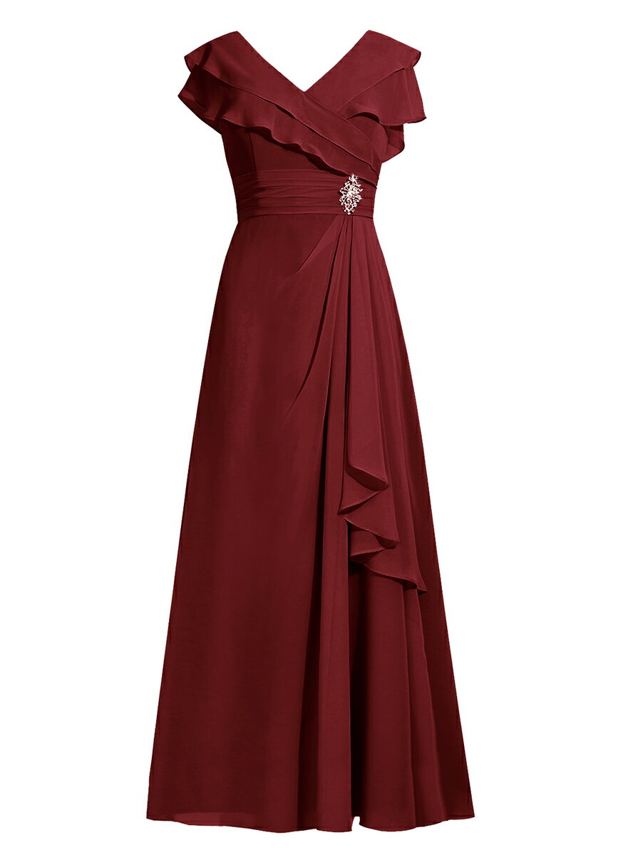 パーティードレス 結婚式 Vネック ハイウエスト シフォンワンピース ロングドレス 着痩せ 花嫁ワンピース 結婚式 袖あり ステージドレス 二次会 ピアノ演奏会ドレス 30代 40代 50代フォーマルドレス プレゼント