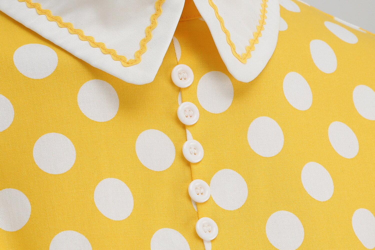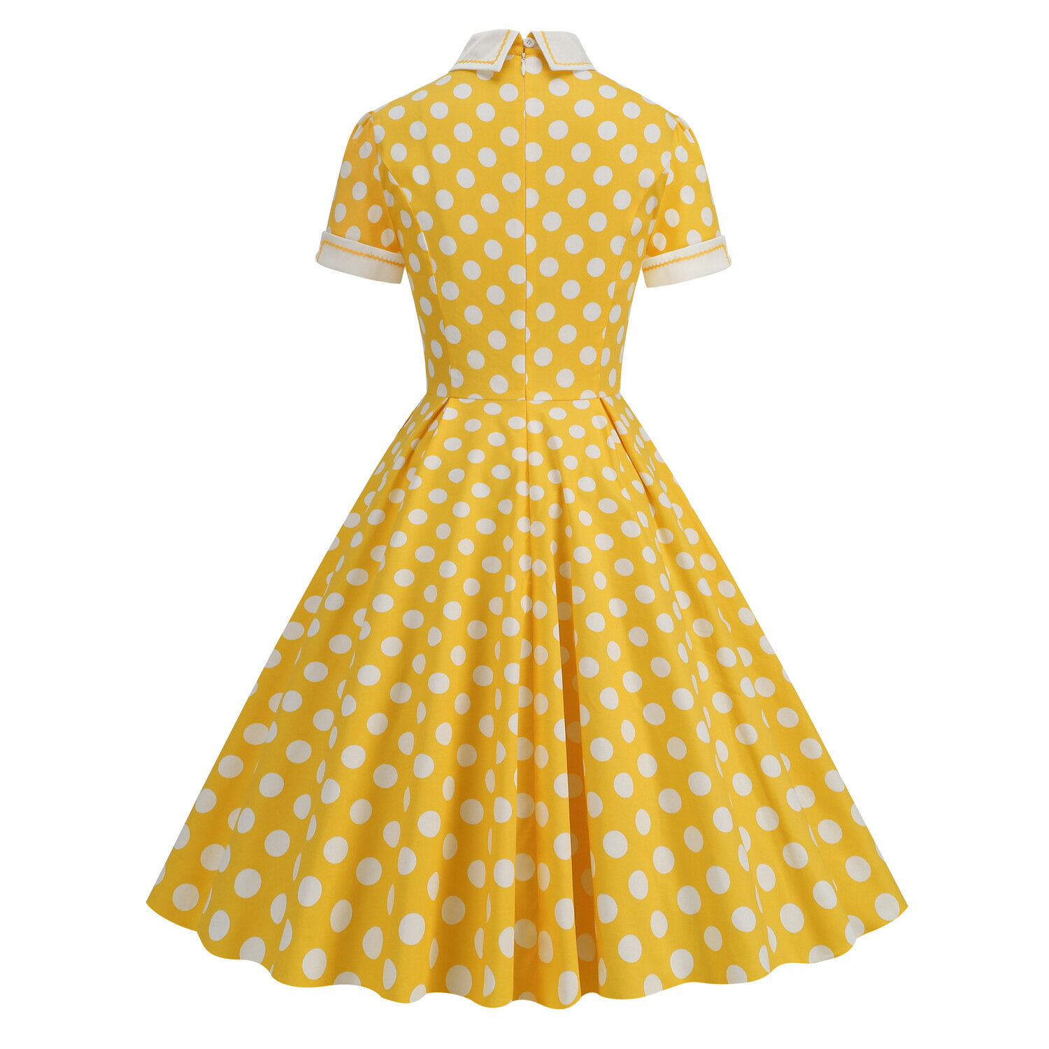 【楽天イーグルス感謝祭★P5倍】ワンピース 春夏 レディース レトロドレス S-2XL 結婚式 ドット柄 無地 襟あり Aライン半袖 レトロワンピース ロカビリー可愛い着痩せハイウエストボタン 膝 50年代 スイングワンピ お花見 お呼ばれ 謝恩会 披露宴 オールシーズン プレゼント