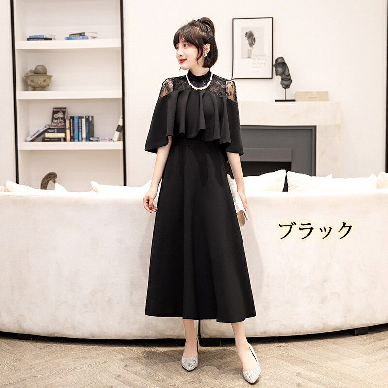 パーティードレス 結婚式 ワンピース ロング丈 胸パッド付き 大きいサイズ マタニティ フォーマル レース フリル ドレス マキシ きれいめ 楽チン ゆったり フリル レディース パーティー 夏 秋冬 大人 可愛い 半袖 袖あり イブニングドレス