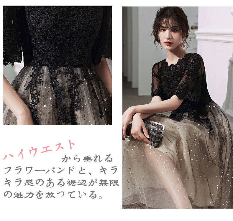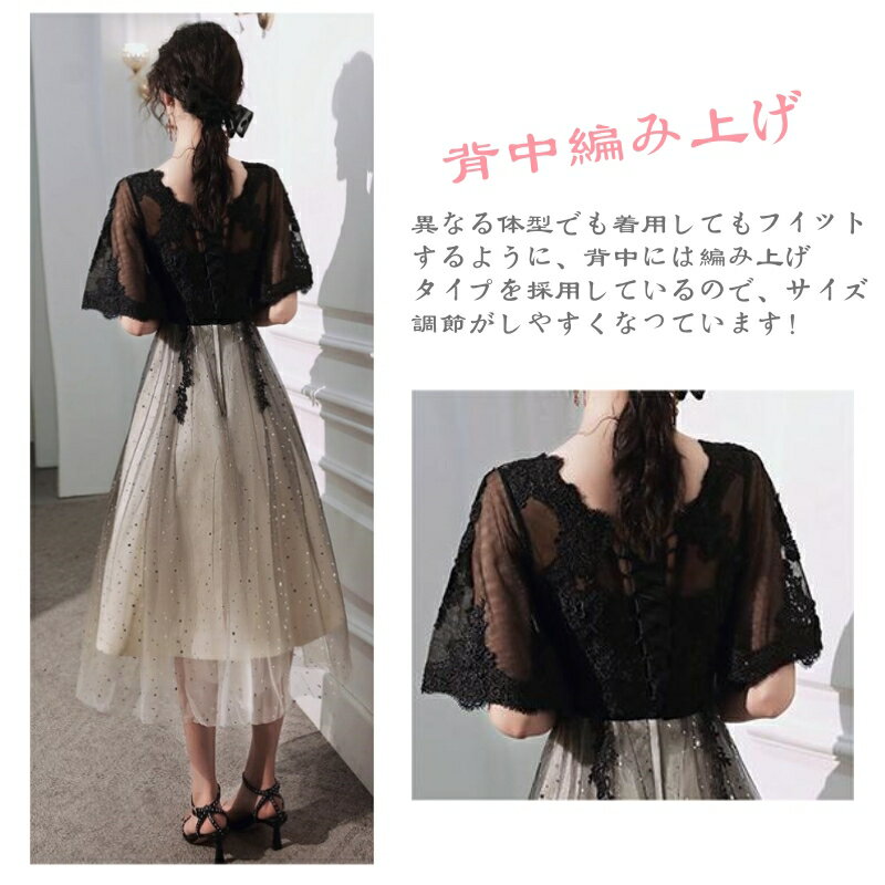 \限定5%OFFクーポンあり/パーティードレス 結婚式 レディース 中学生 高校生 ドレス ロング丈 ミドル丈 レース ゆったり 春 夏 秋 大人 胸パッド付き 上品 ピアノ 二次会 謝恩会 発表会 演奏会 可愛い 個性的 黒 半袖 大きいサイズ 体型カバー 低身長 オーダーメイド可能