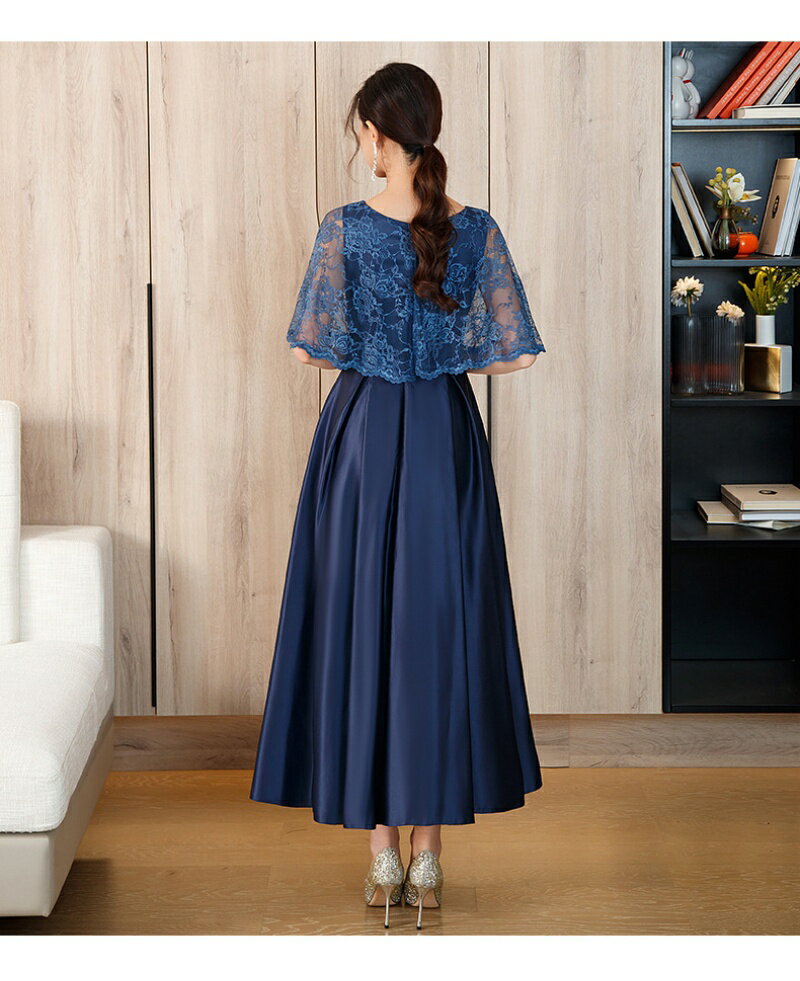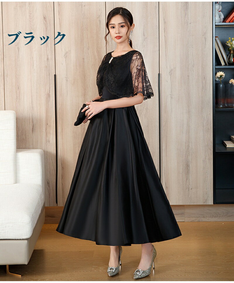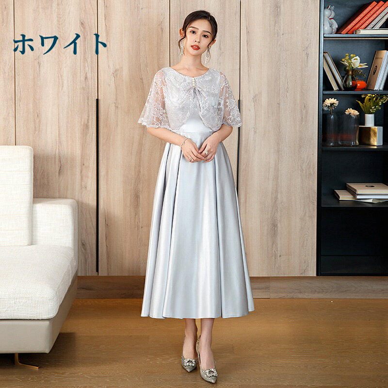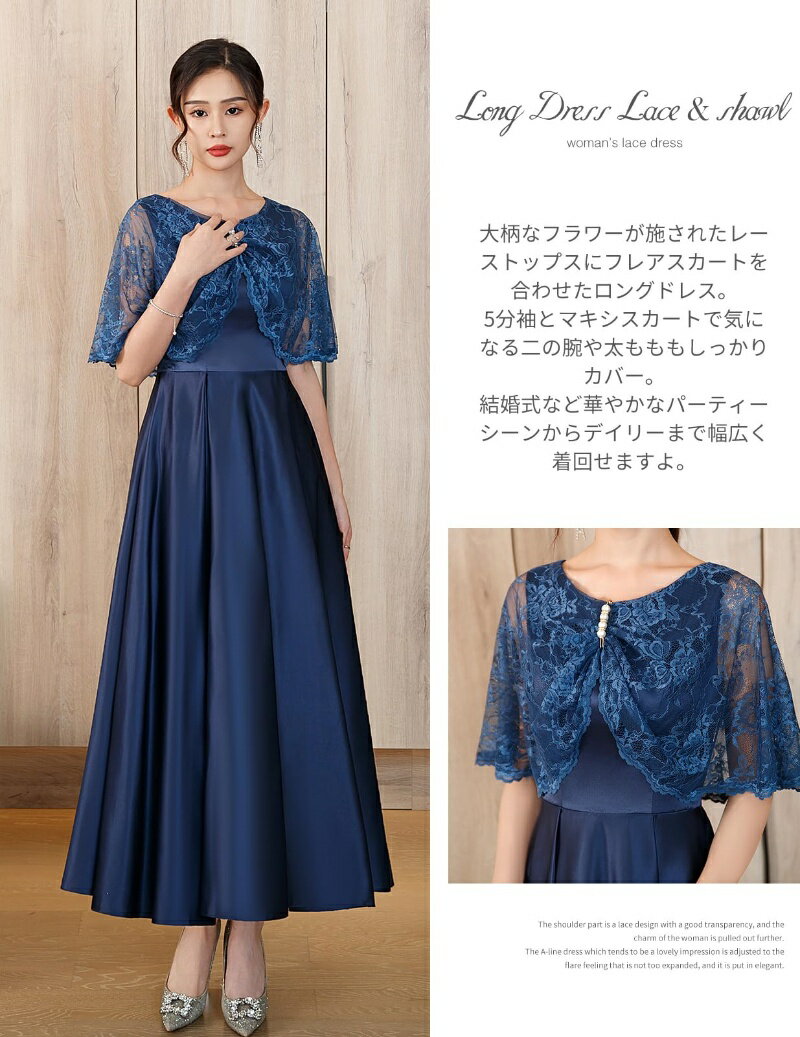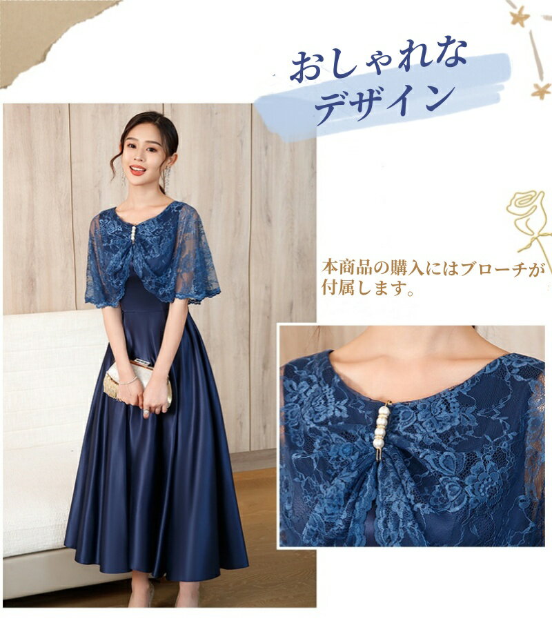 【限定:6%OFF】\ブローチ付き/パーティードレス 結婚式 ワンピース ロング丈 大きいサイズ フォーマル マザーズドレス レースストール 五分袖 半袖ドレス ケープ ワンピース きれいめ 卒業式 夏 春 秋 冬 大人 成人式 上品 体型カバー 50代 40代 30代 20代