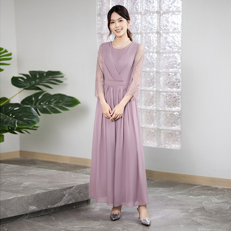 パーティードレス 結婚式 ロングドレス オケージョン 袖あり レース シフォン ワンピース フォーマル 大きいサイズ ハイウエスト 美脚 ゆったり 20代 30代 40代 50代 お呼ばれ 女子会 食事会 同窓会 秋冬