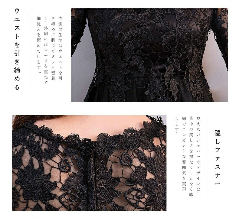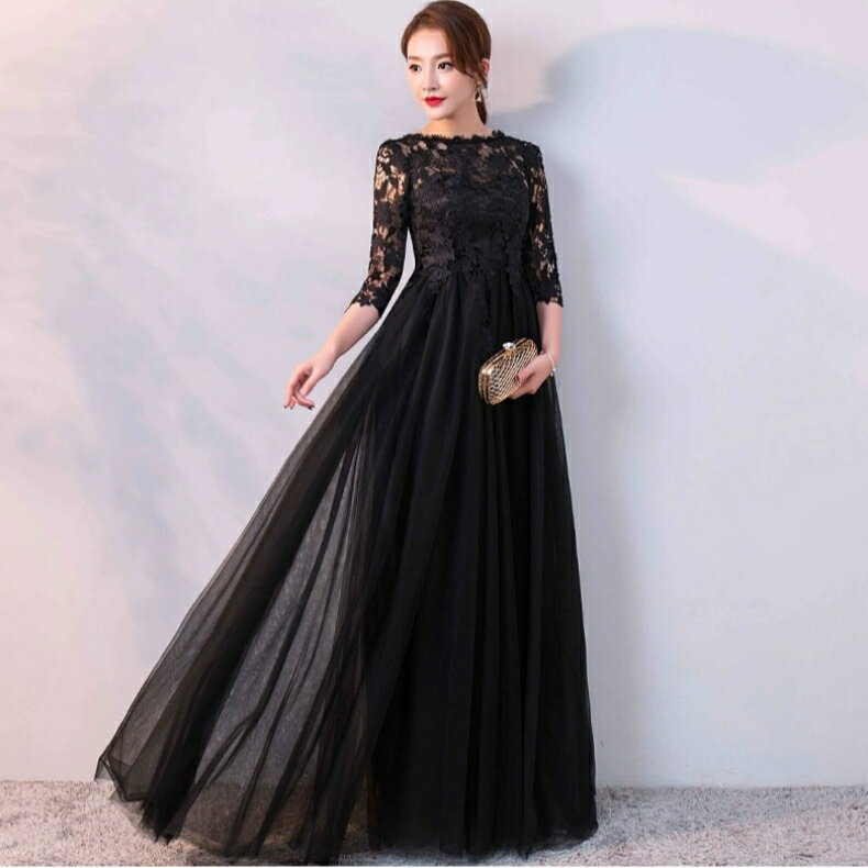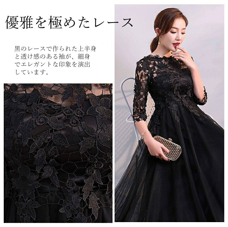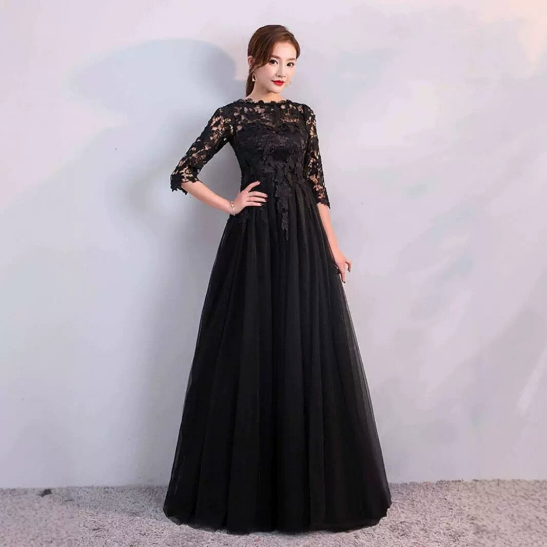 ロングドレス 演奏会ドレス パーティードレス 発表会 ピアノ フォーマル 黒 ブラック 袖あり 体型カバー 着痩せ エレガント 大きいサイズ オケージョンドレス イブニングドレス 結婚式 ミセス 30代 40代 50代60代