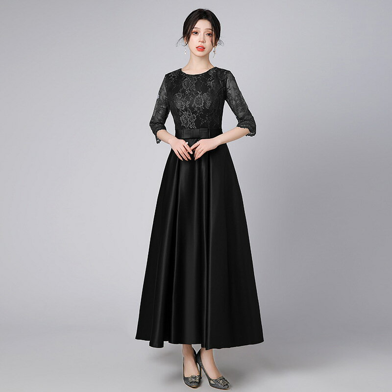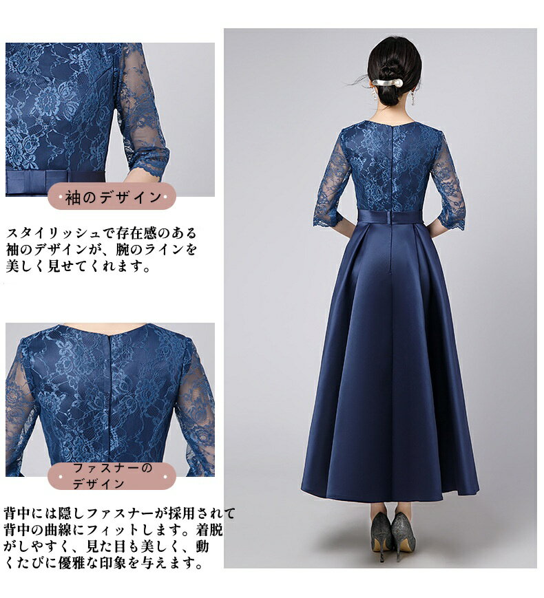 \楽天大感謝祭★300円OFFcp/ロングドレス パーティードレス ワンピース 袖あり 冬 結婚式 二次会 パーティー エレガント きれいめ 体型カバー 着痩せ 美脚 レース 秋冬 フォーマルドレス イブニングドレス オケージョンドレス ミセス 母親 同窓会 大学生 高校生