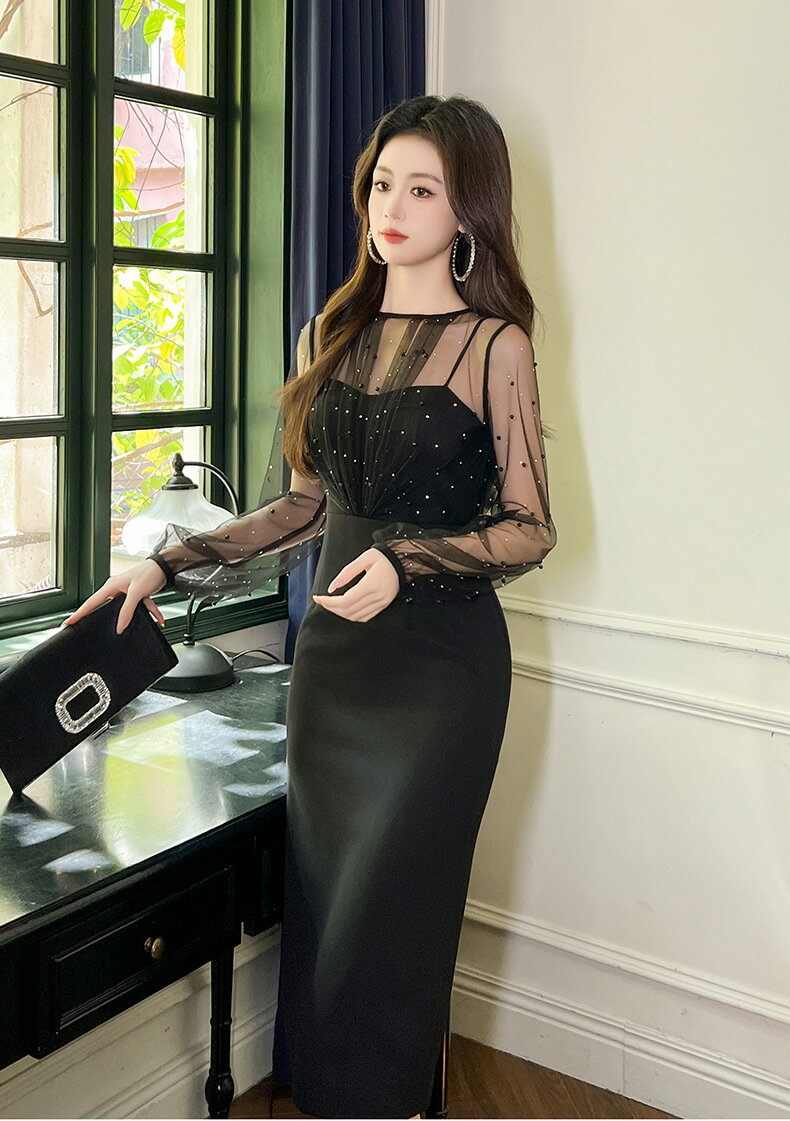 マーメイドドレス タイトワンピース 姫系ドレス パーティードレス セクシーワンピース フォーマル ミディアム丈 大人 デザイン感 おしゃれ 上品 お呼ばれ 韓国ファッション 入園式 卒業式 結婚式 披露宴 結婚式 二次会 黒 個性的 顔合わせ デート