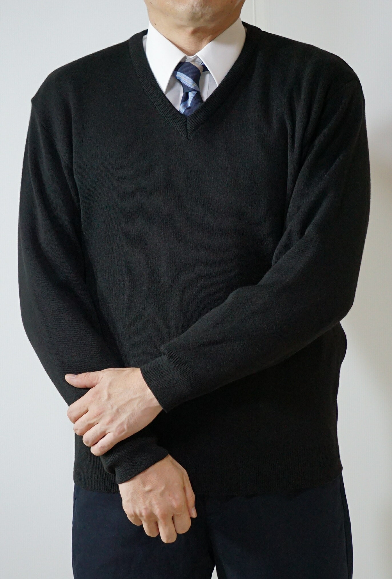 日本製 メンズ V首セーター ビジネス 無地 洗濯機OK Vネック ウール混 秋冬春 ハイゲージ ウォッシャブル ベーシック クールビズ ウォームビズ プレゼント 誕生日 還暦 M L LL 大きいサイズ 防寒 黒 父の日 春夏 クーラーエアコン対策 定番 毛玉抑制