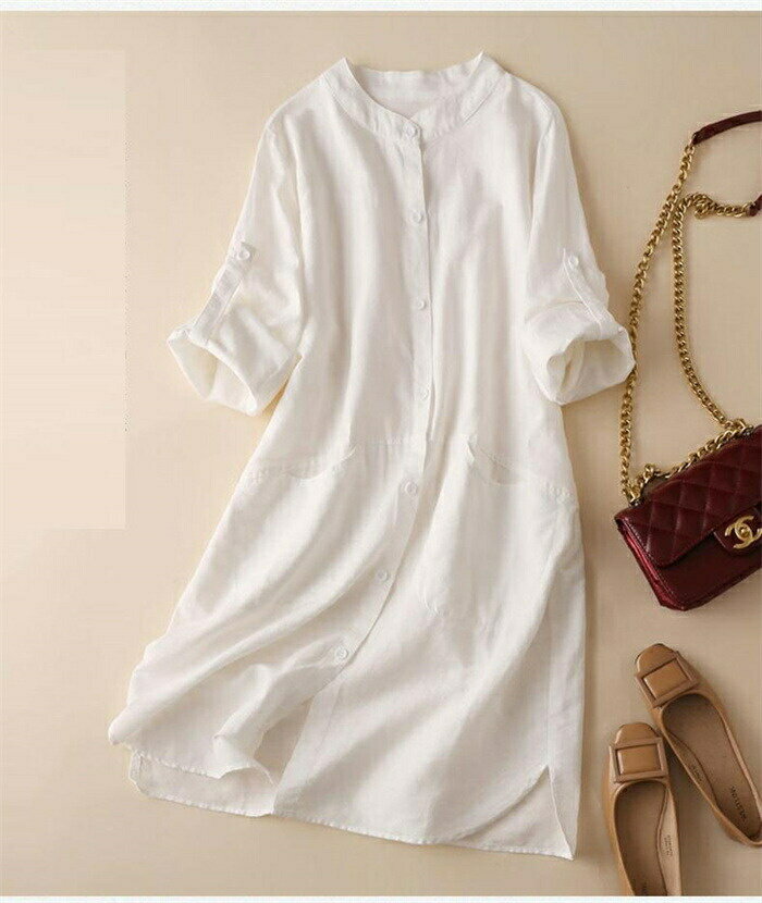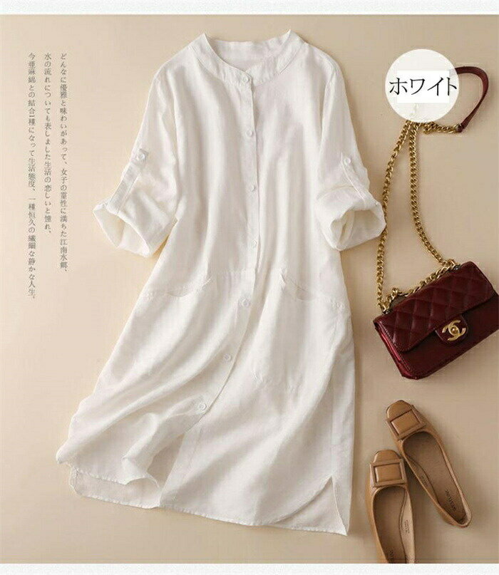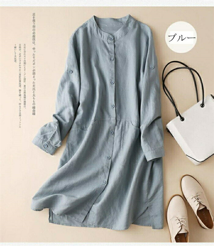 チュニック トップス レディース 秋 初秋 5分袖 長袖 ロングシャツ シャツワンピース ワンピース 綿麻 春 きれいめ リネン風 ロングワンピース 無地 ロングワンピ シャツ ワンピース 膝丈 シャツワンピ 春夏 ゆったり シンプル おしゃれ 体型カバー 肌触りいい 送料無料