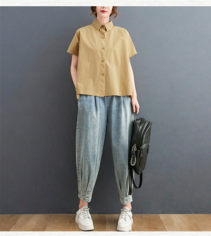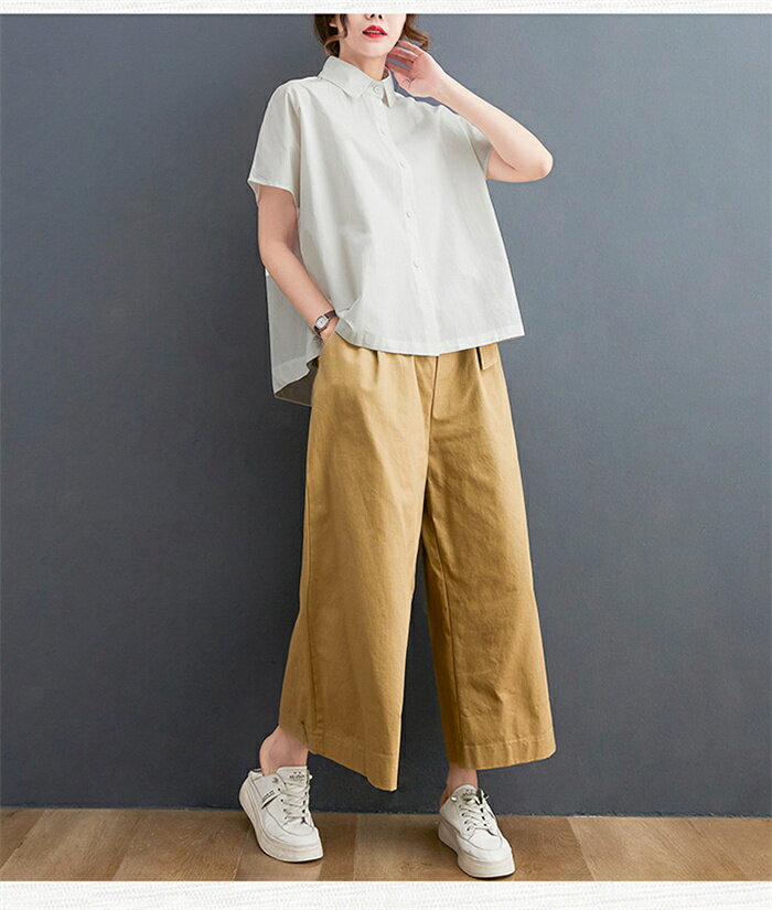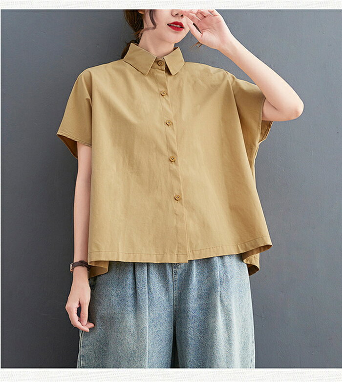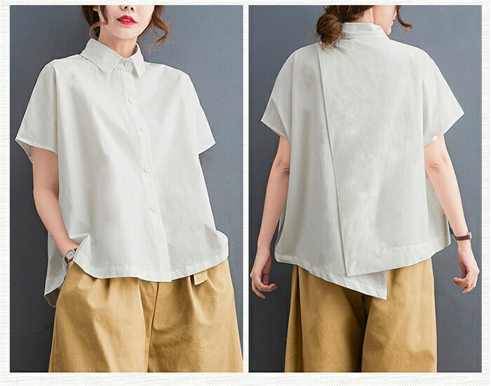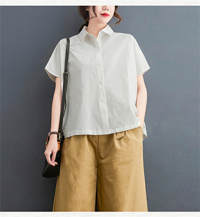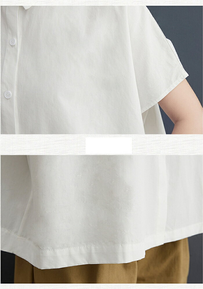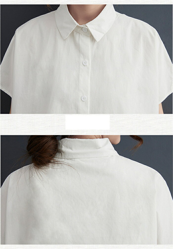 半袖シャツ シャツ レディース シャツブラウス チュニック ブラウス ホワイトシャツ 通勤シャツ 無地シャツ 夏 羽織り アウター 白シャツ 折襟 半袖 ボタン付き 綿シャツ ショート丈 折襟 前開け アシンメトリー 不規則裾 薄手 カジュアル風 体型カバー 通学 学生 送料無料