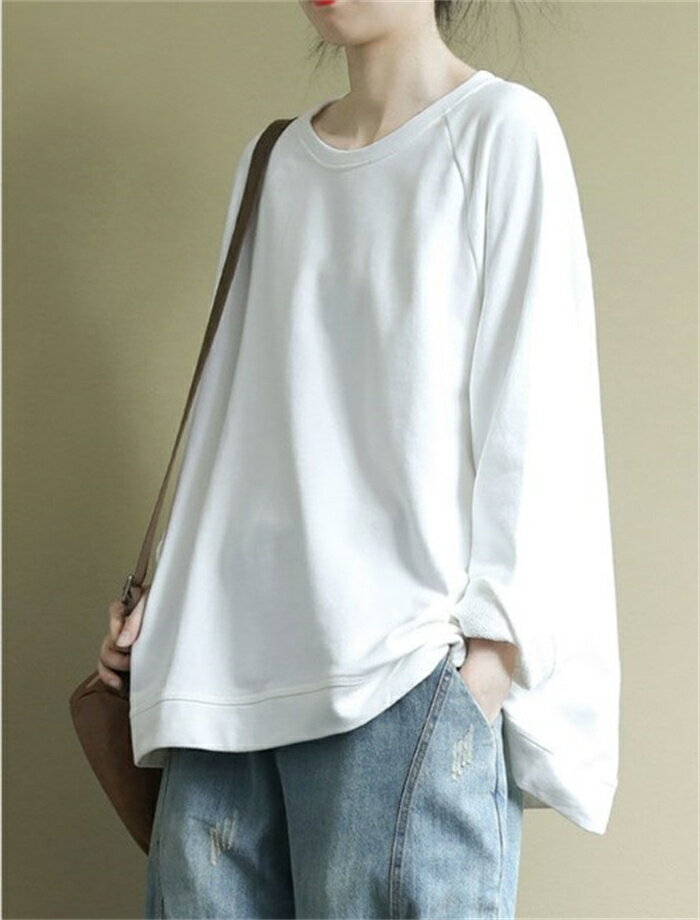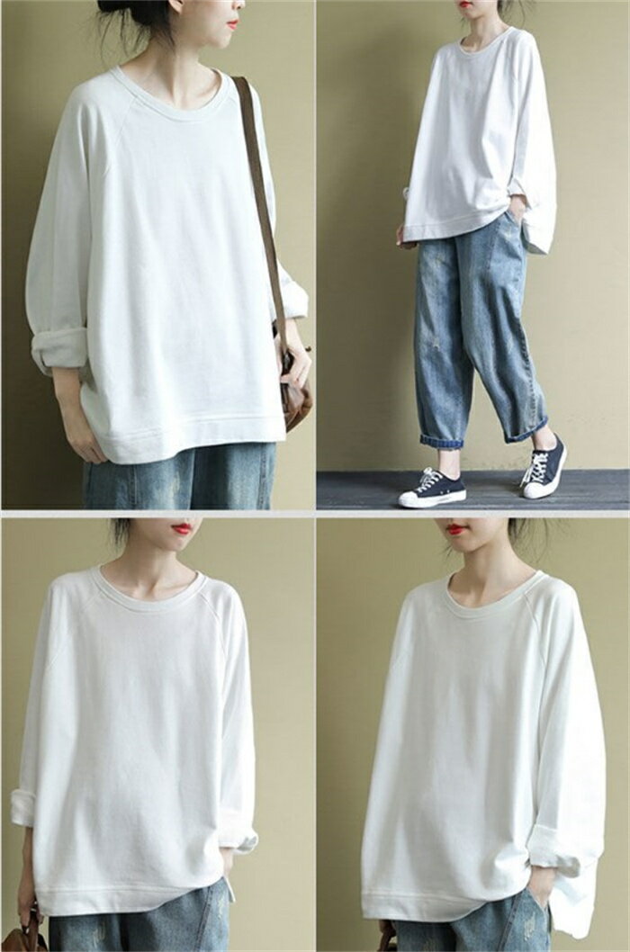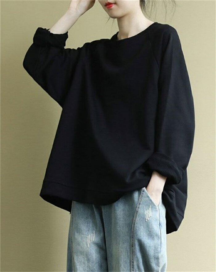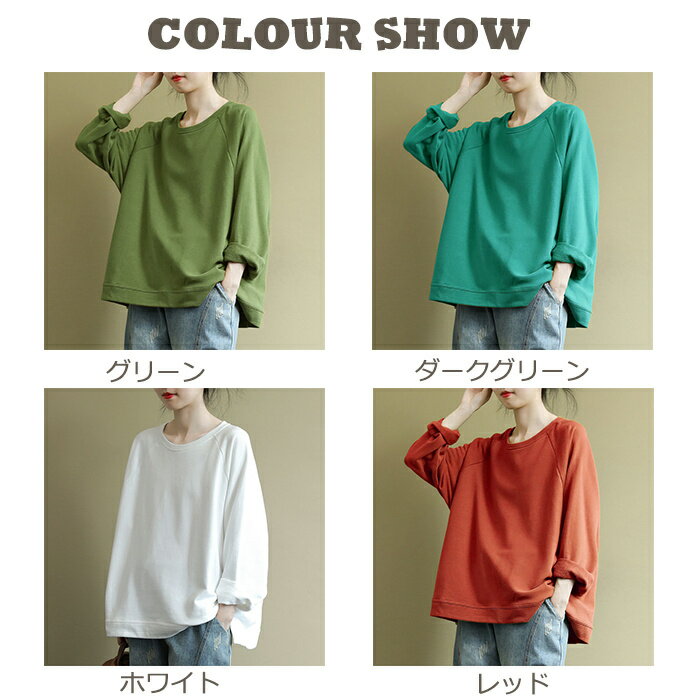【3/25限定P5:半額クーポン利用可:1枚1,640円】長袖Tシャツ レディース ブラウス おしゃれ 春秋 Tシャツ 長袖 ゆったり リブ プルオーバー パーカー 丸首 ドロップショルダー 袖折り返し トップス 大きいサイズ ワイTシャツ シャツブラウス 体型カバー 着痩せ シンプル