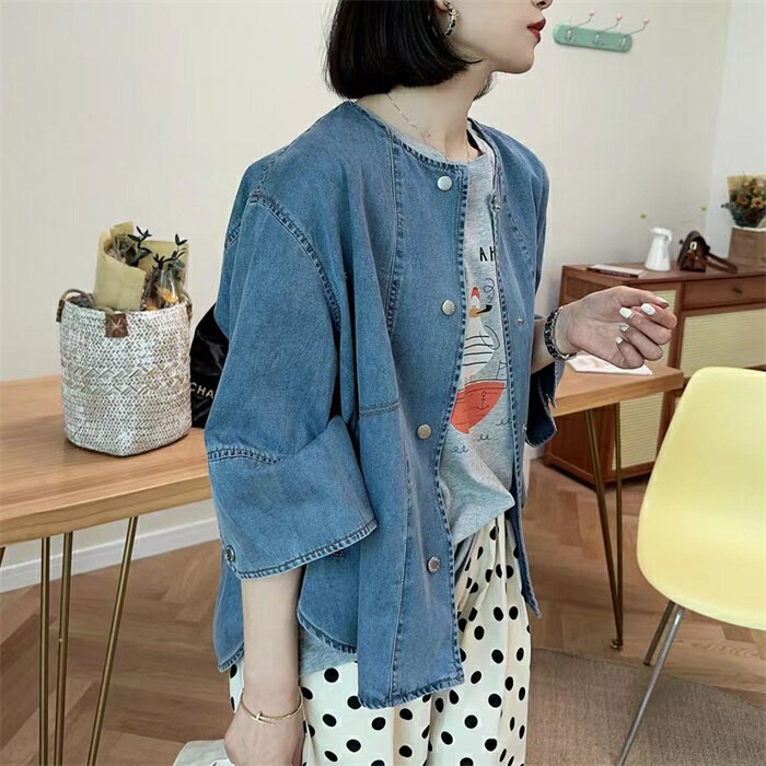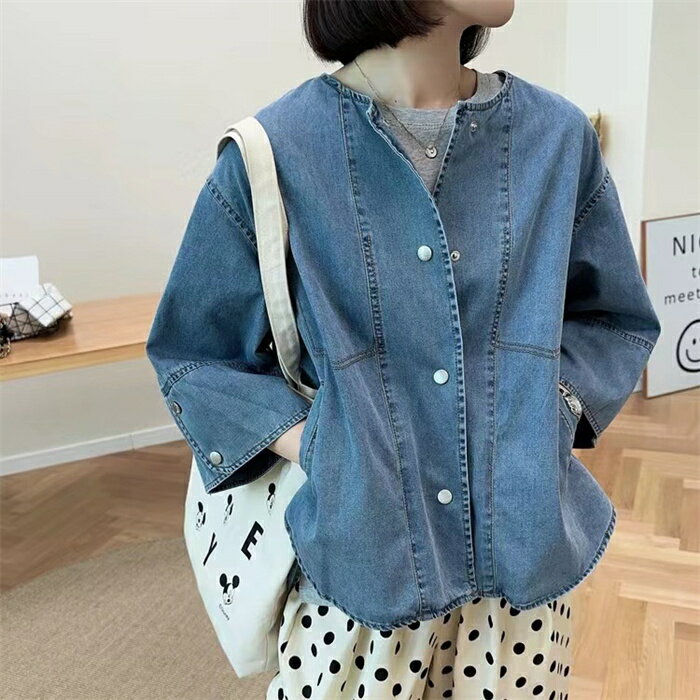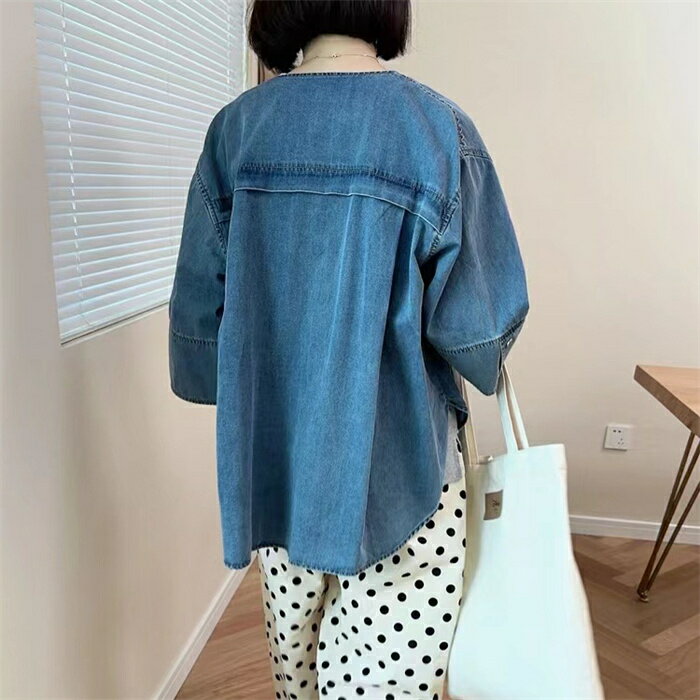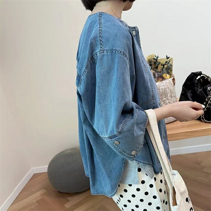 カーディガン レディース デニム デニムコート 春秋 初秋 コーディガン 春 夏 アウター デニムアウター トップス ジャケット 七分袖 ノーカラー 7分袖 ショート丈 ライトアウター 羽織り 羽織 薄手 秋 前開け 前後差 ゆったり