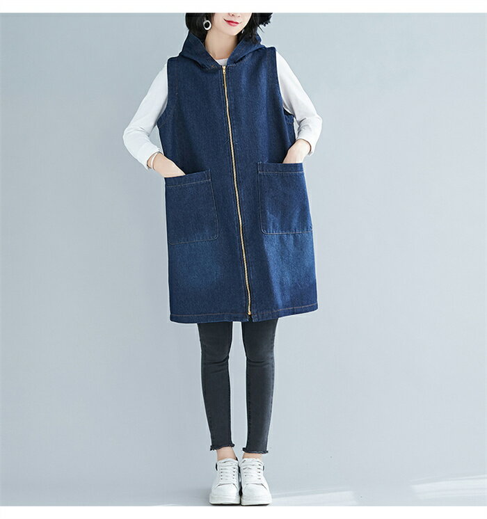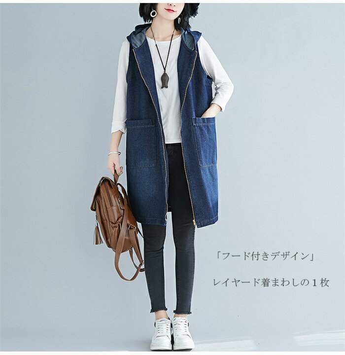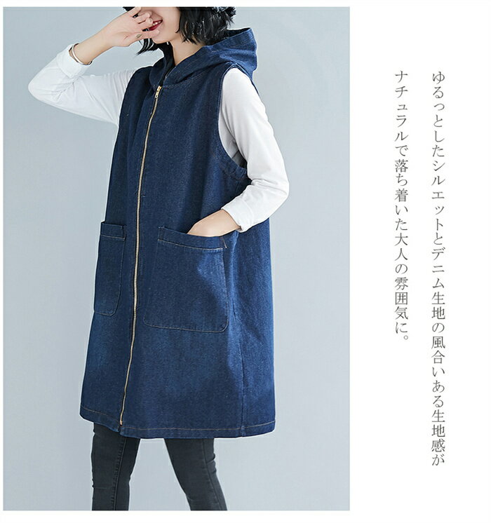 デニムベスト レディース フード付きベスト ベスト 春 コーデ ノースリーブ デニム ロングジレ 春夏 羽織り ゆったり ジレ コート アウター ロングコート ロングベスト おしゃれ 大きいサイズ レイヤード風 トップス ジャケット 送料無料