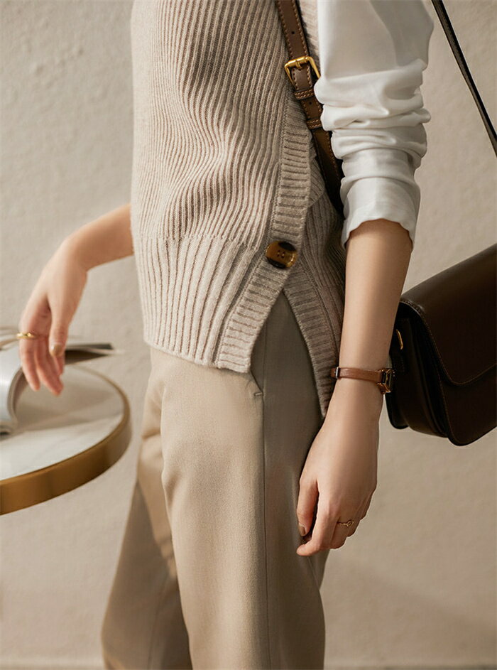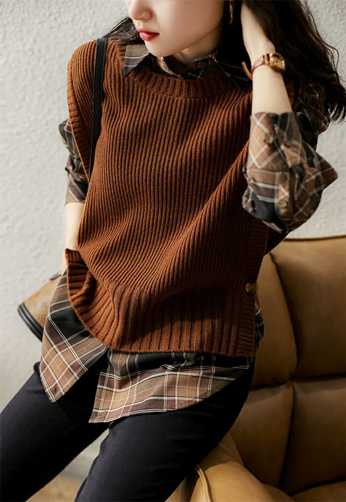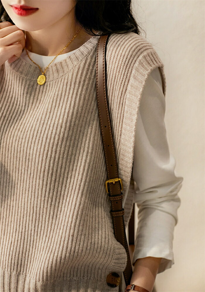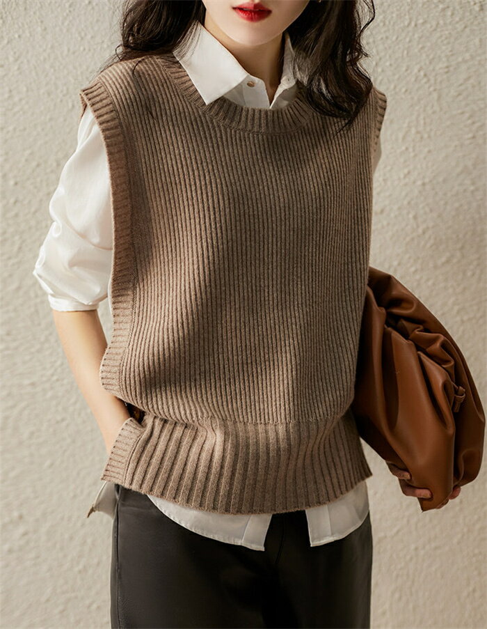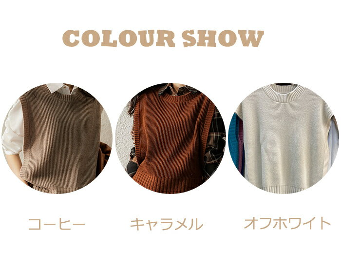 ニット ベスト レディース ニットベスト ジレ クルーネック トップス ノースリーブ リブ編み ニットトップス セーター 重ね着 ニットセーター 春 秋 アウター インナー 無地 スリット入り ショート丈 レイヤード ジレベスト ニットソー 秋冬 お洒落 暖かい 送料無料