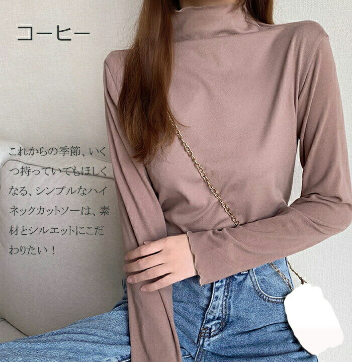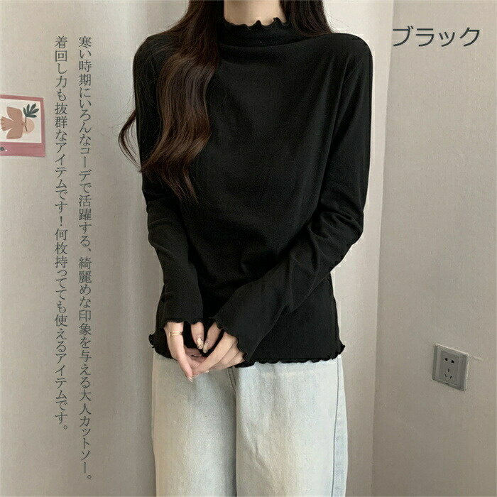 【即納:クーポン利用で1枚1,080円】プチハイネック カットソー インナー 秋冬 微起毛 レディース 長袖 トップス ブラウス 長袖インナー ハイネック ストレッチ 柔らか コーデ レイヤード きれいめ おしゃれ フリルネック カラバリー あったかい 送料無料