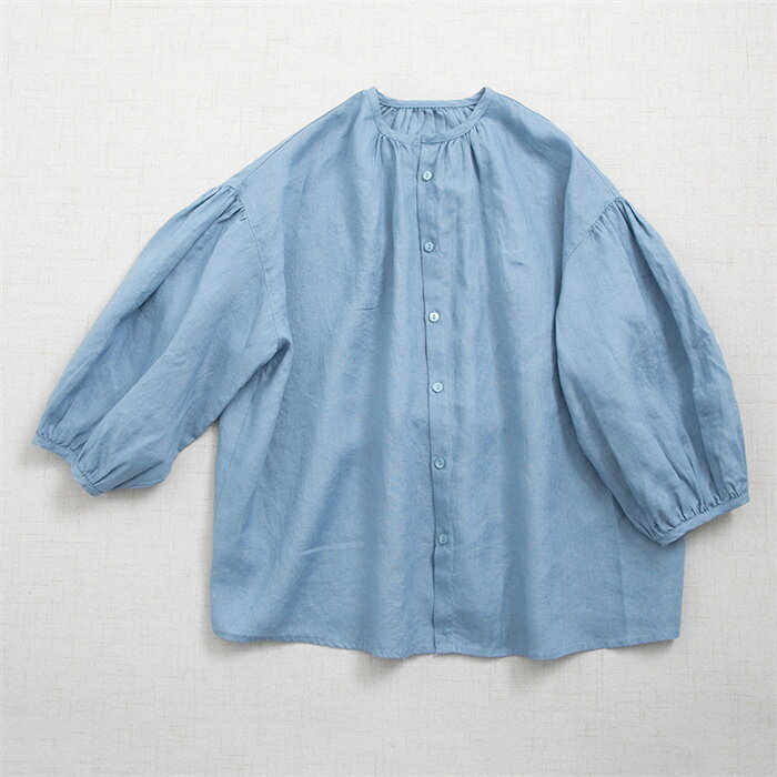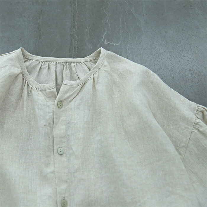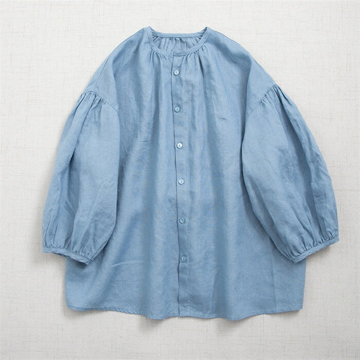 シャツ レディース シャツブラウス ブラウス チュニック 七分袖 秋 アウター トップス 春秋 7分袖シャツ グルーネック シャツ 春 ノーカラー 前開け 羽織り 無地 7分袖 ゆったり 羽織る 無地シャツ バルーン袖 ゆったり シンプル おしゃれ 体型カバー 送料無料