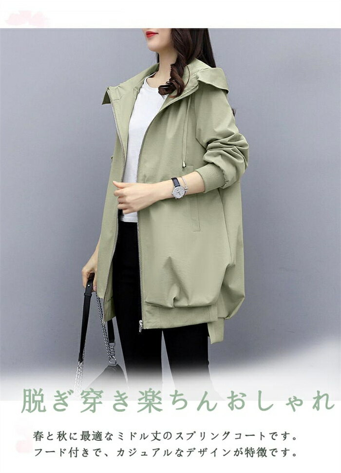 \1枚3,180円!100円OFFクーポン利用で/ アウター コート スプリングコート レディース ミドル丈 春 秋 ジャケット フード付き ライトアウター ブルゾン コート ロング ミドル ロングコート 大きいサイズ お洒落 春秋 上着 裏地 通勤 通学 無地 カジュアル