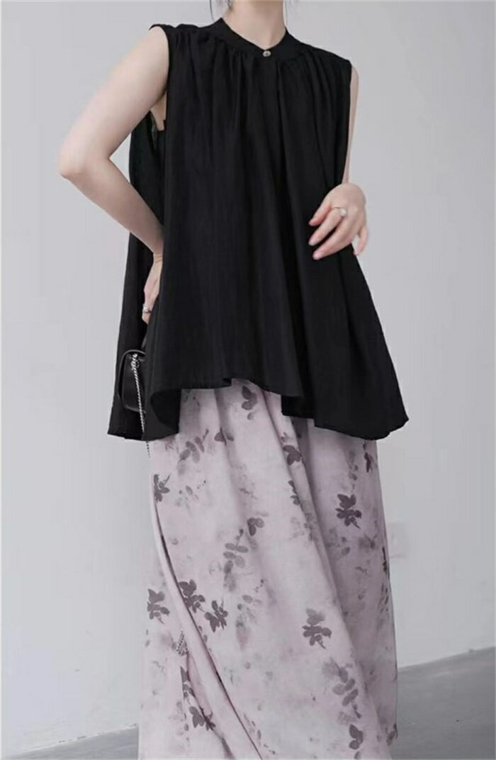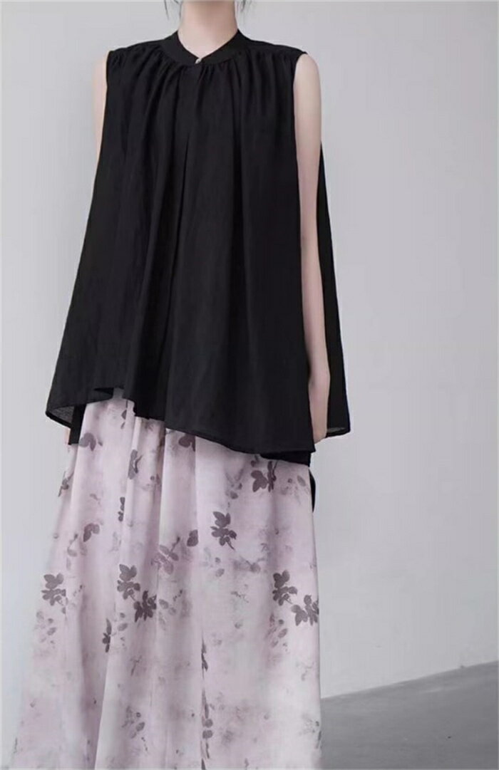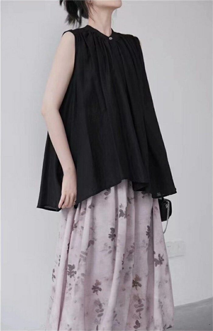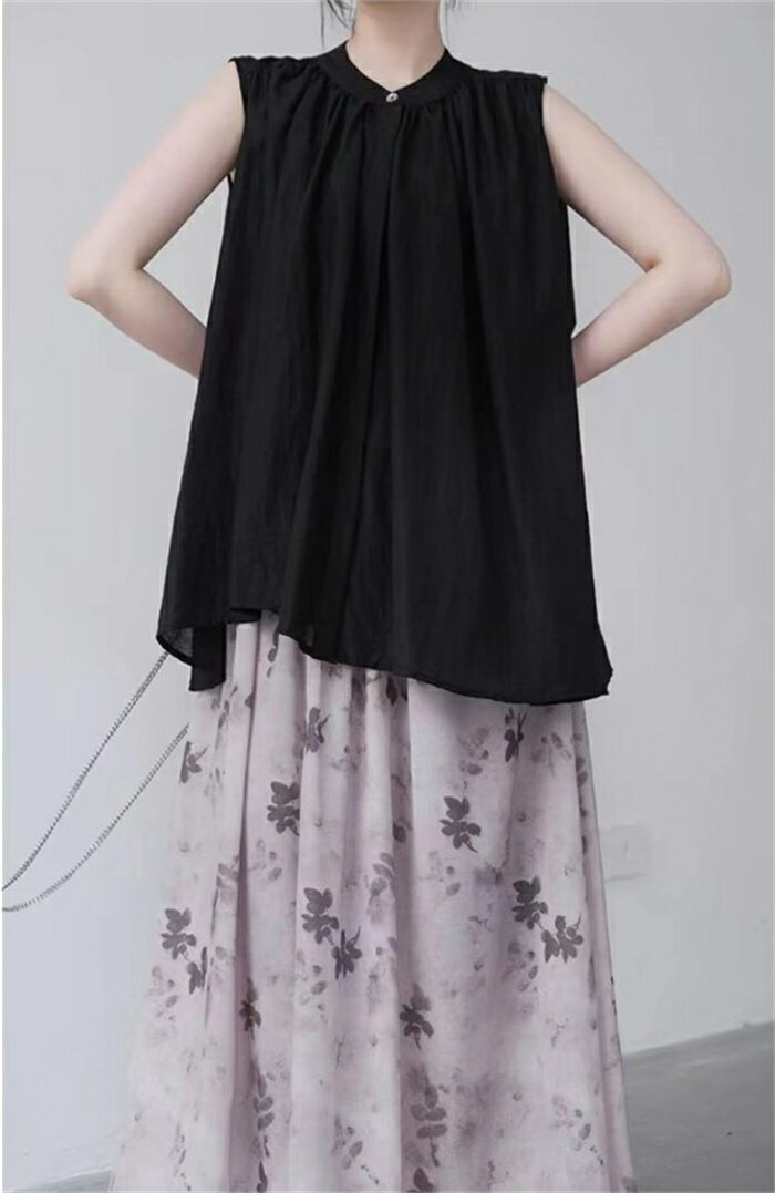 シャツ シャツブラウス レディース ノースリーブ 袖なし 夏 トップス ブラウス チュニック スタンドカラー 無地 黒 ブラック アシンメトリー 綿麻シャツ 綿麻風 プルオーバー ミディ丈 体型カバー Aライト 通勤 涼しい 通気性 カジュアル風 綺麗め おしゃれ 送料無料