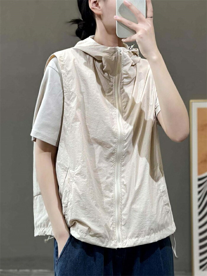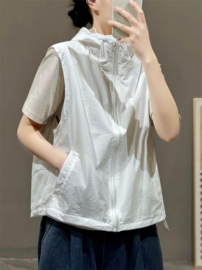 パーカー ノースリーブ レディース ジャケット ベスト スポーツパーカー メッシュベスト 夏 熱中対策 涼感 アウトドアベスト ファスナー ショート丈 フード付き スポーツ 無地ベスト 袖なし 軽量 通気 速乾 重ねき お釣り